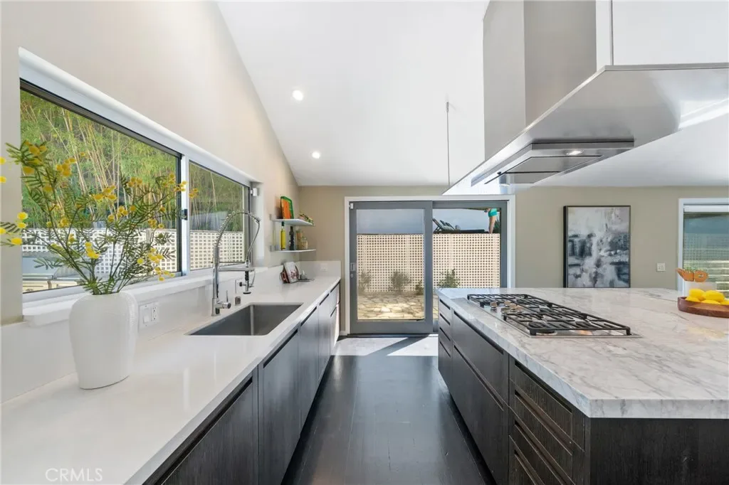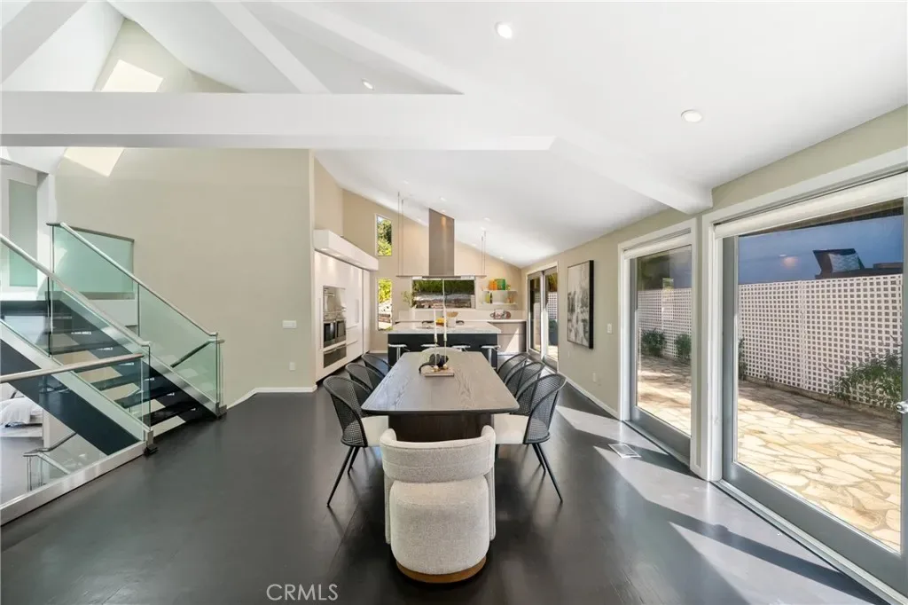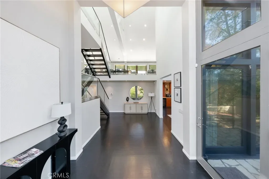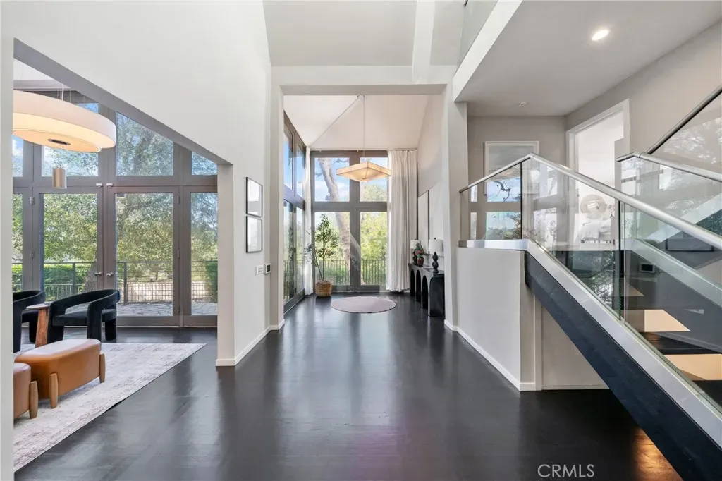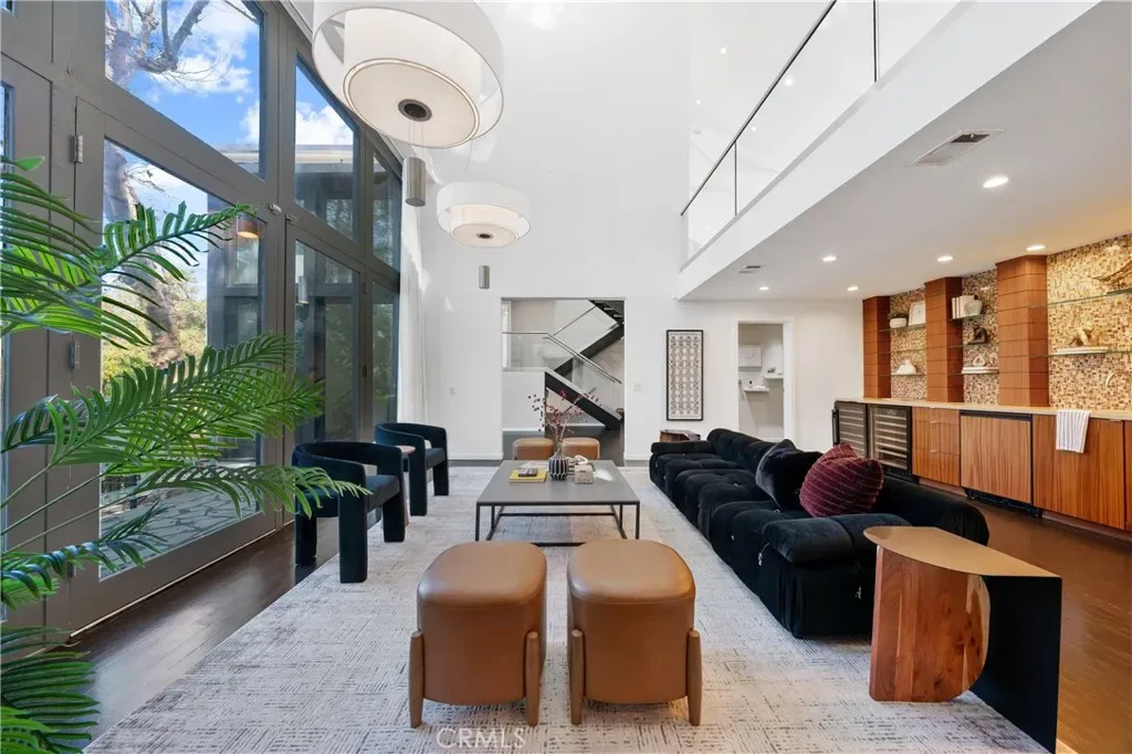 The home captures the essence of mid-century California architecture—clean structural lines, expansive glass, and a deliberate connection to nature—while integrating modern materials and contemporary refinement. Floor-to-ceiling windows invite natural light to pour into the interiors throughout the day, turning the surrounding canyon and oak groves into a constantly changing backdrop. The result is a living environment that feels open, calm, and deeply connected to its setting.
