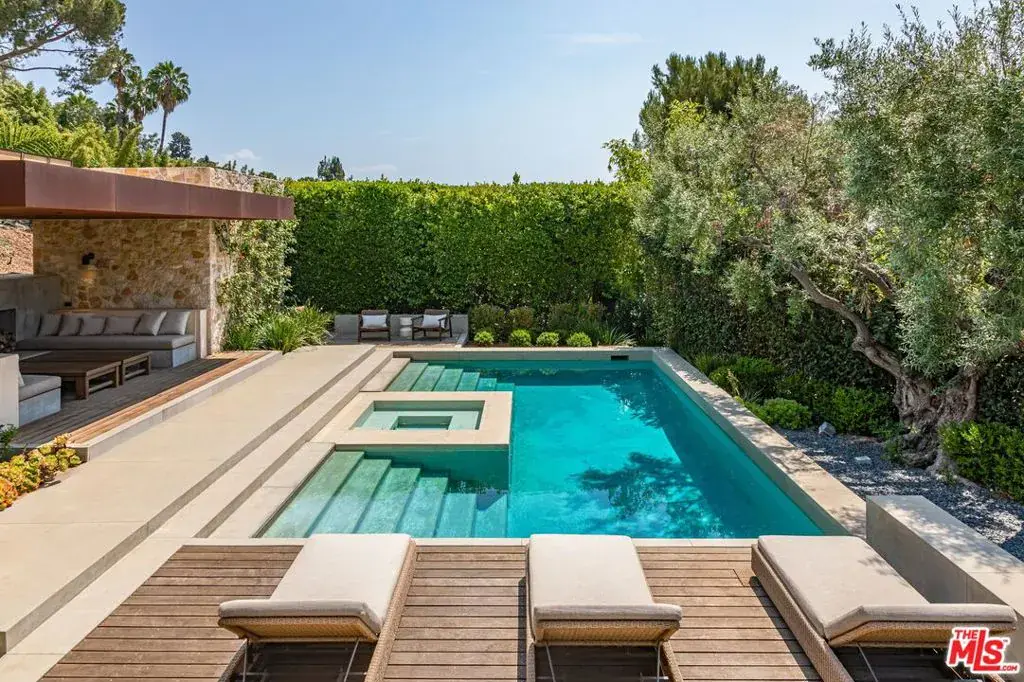 Alpine Ranch, located on one of the most prestigious streets in Beverly Hills, is a gated, custom-built Italian Villa originally designed by acclaimed architects Luis Ortega and Jose Fernandez. It has been fully reimagined as a brand-new home, impeccably redesigned and furnished by Amber Interiors. Every detail of this 5-bed, 5-bath estate has been thoughtfully upgraded, from fully renovated bathrooms, bedrooms, and living spaces to a comprehensive redesign by Amber Interiors. Their curated touches include bespoke furnishings, hand-thrown ceramics, artfully stacked books, and carefully layered textiles all included in the sale for a true turnkey experience. Interior highlights blend rustic charm with refined elegance, including exposed wood beam ceilings, steel-framed windows, and natural stone accents reminiscent of a countryside villa in the South of France. The main level is thoughtfully laid out with a sunlit formal living room that opens to a serene outdoor patio, an inviting dining room, and a chef’s kitchen outfitted with Wolf appliances. Four bedrooms are located on this level, including a private primary wing that serves as a true retreat, featuring garden and pool views, a spa-quality bath with rain shower, freestanding tub, and overhead skylights that bathe the space in natural light. Upstairs, a separate private casita and an additional flex bedroom or gym open onto a generous covered balcony and rooftop deck. Set behind gates, the grounds are just as captivating as the interiors. A sprawling motor court offers ample parking for guests, while the expansive grassy yard, resort-style pool, and sun-drenched cabana invite effortless indoor-outdoor living. Thoughtful details like a private outdoor shower and a dedicated pool bathroom add both convenience and charm, creating a true sanctuary for relaxation and entertaining under the California sun.Just moments from the Beverly Hills Hotel and the world-class shopping, dining, and entertainment of Rodeo Drive, Alpine Ranch is a rare opportunity to own a fully furnished, design-forward estate in one of the most iconic neighborhoods in the world.