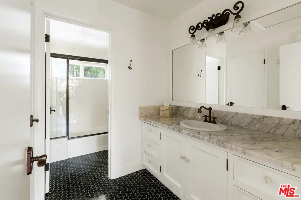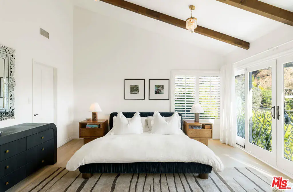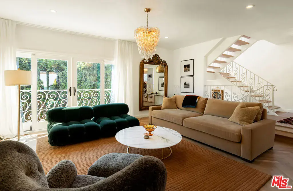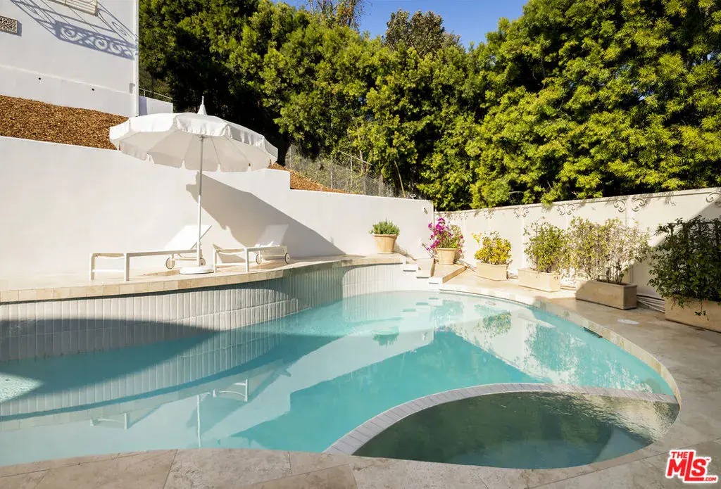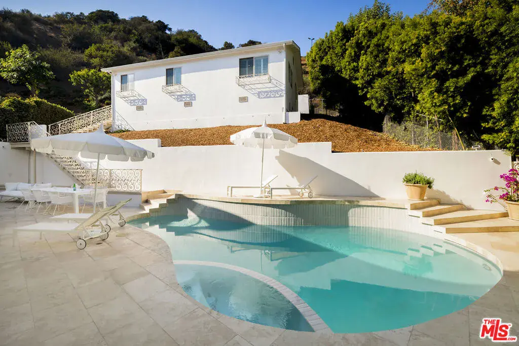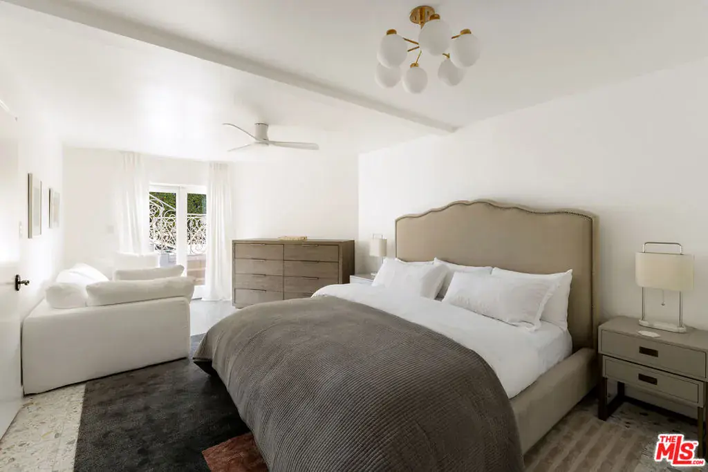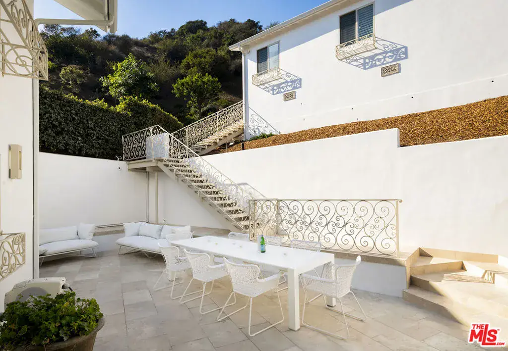 Nestled in a quiet 4 house cul de sac off of San Ysidro Drive, this recently renovated home with a fully equipped guest house is just minutes from everything Beverly Hills has to offer. Offered fully furnished and equipped. Completely ready for an easy move in. The main house creates ample curb appeal with large windows, ivory travertine stairs, and cream wrought iron accents. Nero Marquina & Emperador marble laid in a harlequin pattern sets the tone of the kitchen that includes a 9ft center island accented with shearling barstools, marble slab backsplash, Viking appliances, unlacquered brass hardware, commercial grade range, and brand new walk-in pantry. The formal dining and living rooms are laid out for seamless entertaining with a full bar, camel colored quartzite fireplace, large antique hutch for serving dinner parties, and sliding doors towards the front & back for open air. The moody powder room mixes Nero Marquina & Rojo Alicante marble with an overmount copper sink original to the house. There was special attention paid to opting for natural materials when designing the spaces including natural stones, wool rugs, linen curtains, cotton velvets, wool boucle, shearling/hides, and solid hardwood floors. Crystal chandeliers and a warm color palette invite you home. The primary suite features soaring vaulted ceilings, marble fireplace, walk-in closet, and Carrara marble bathroom with a clawfoot tub. The walkout lower level with Terrazzo floors throughout includes a spacious bedroom with en-suite Calacatta green + Calacatta gold marble & Picasso quartzite full bathroom, full laundry room, and access to the attached garage. The backyard is an oasis with an ivory travertine patio, saltwater pool with jacuzzi, outdoor dining for 10, and Viking grill. The spacious guest house is perched above the backyard and is fully equipped with its own kitchen w/ veined granite countertops, laundry, marble bath, built-in closet space, and wrap-around deck w/grill. Access to the guest house is separate via a side gate with its own address.