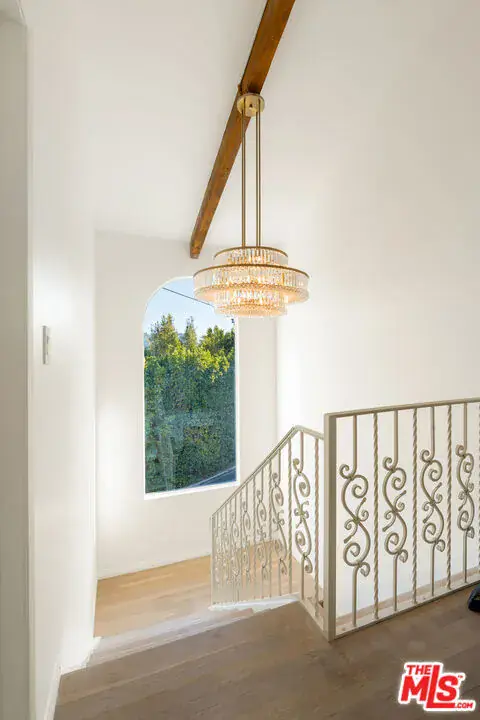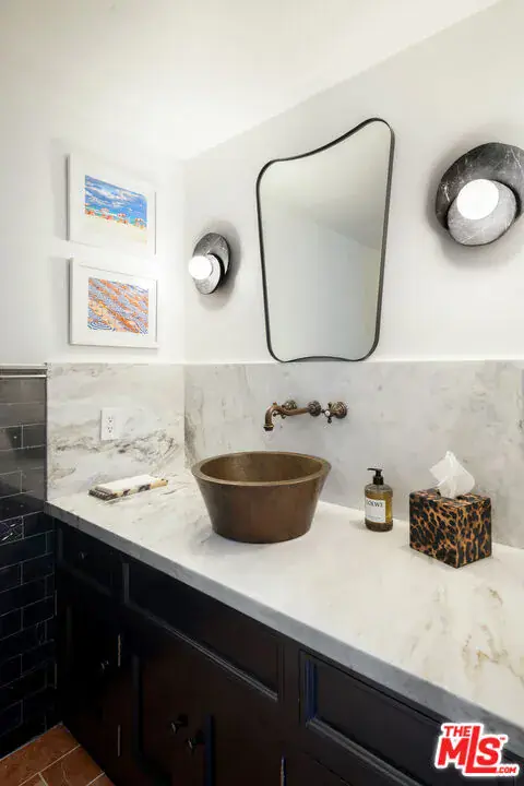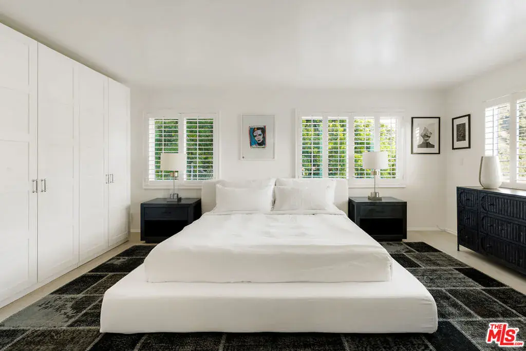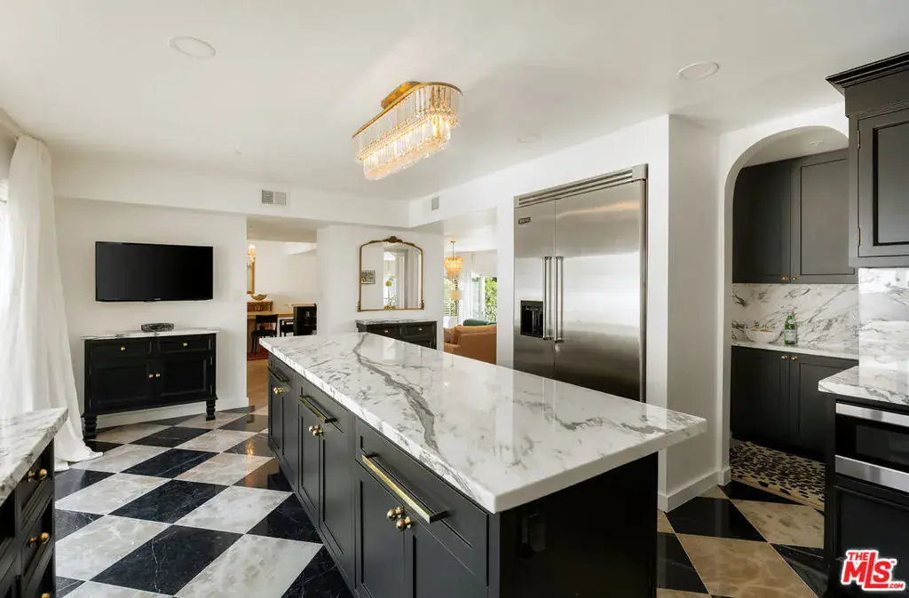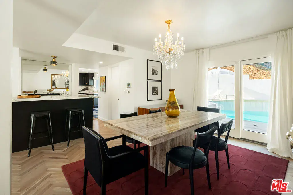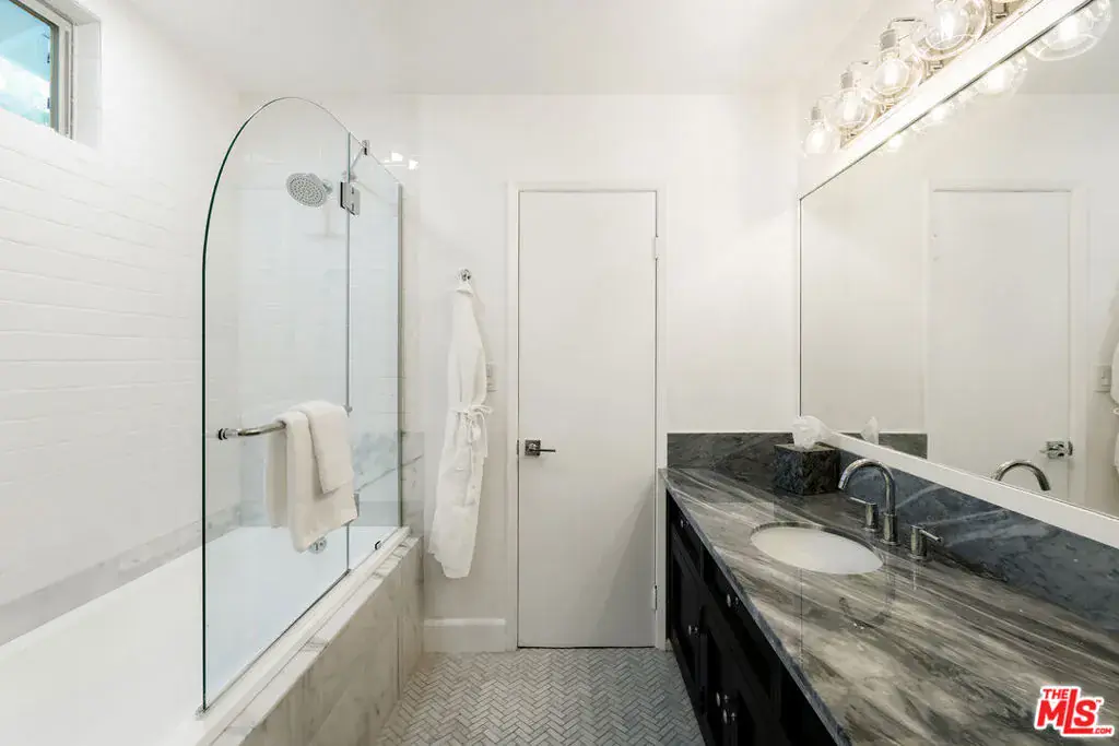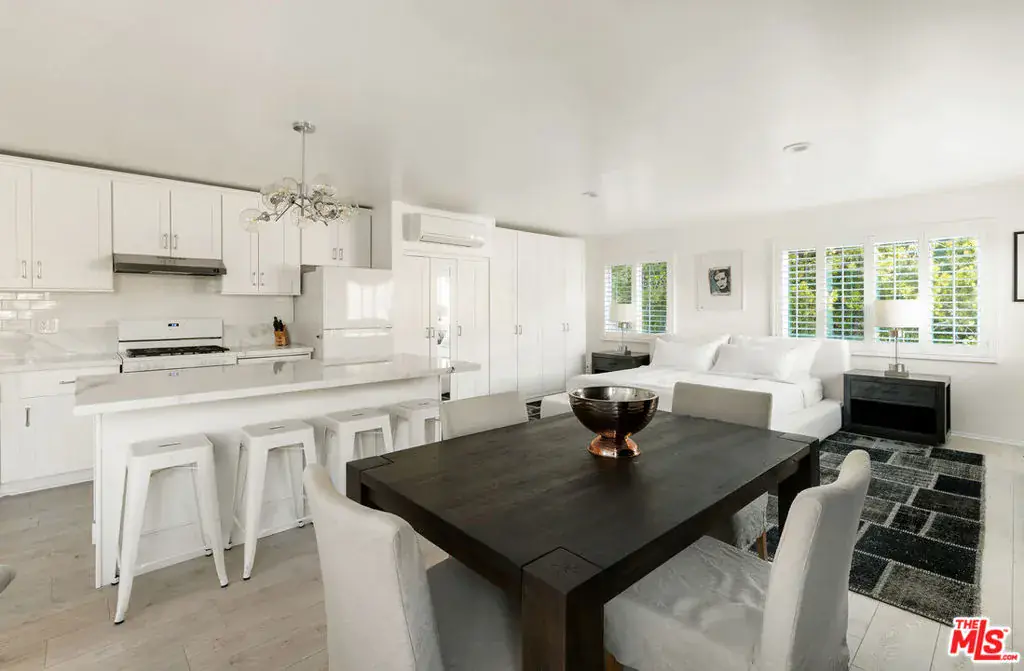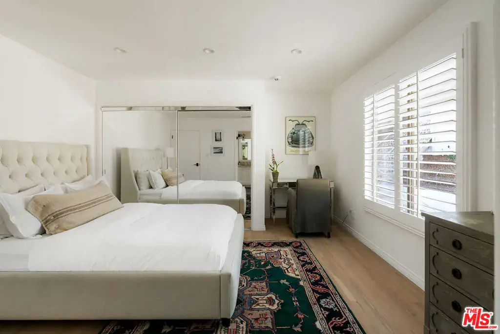 Nestled in a quiet 4 house cul de sac off of San Ysidro Drive, this recently renovated home with a fully equipped guest house is just minutes from everything Beverly Hills has to offer. Offered fully furnished and equipped. Completely ready for an easy move in. The main house creates ample curb appeal with large windows, ivory travertine stairs, and cream wrought iron accents. Nero Marquina & Emperador marble laid in a harlequin pattern sets the tone of the kitchen that includes a 9ft center island accented with shearling barstools, marble slab backsplash, Viking appliances, unlacquered brass hardware, commercial grade range, and brand new walk-in pantry. The formal dining and living rooms are laid out for seamless entertaining with a full bar, camel colored quartzite fireplace, large antique hutch for serving dinner parties, and sliding doors towards the front & back for open air. The moody powder room mixes Nero Marquina & Rojo Alicante marble with an overmount copper sink original to the house. There was special attention paid to opting for natural materials when designing the spaces including natural stones, wool rugs, linen curtains, cotton velvets, wool boucle, shearling/hides, and solid hardwood floors. Crystal chandeliers and a warm color palette invite you home. The primary suite features soaring vaulted ceilings, marble fireplace, walk-in closet, and Carrara marble bathroom with a clawfoot tub. The walkout lower level with Terrazzo floors throughout includes a spacious bedroom with en-suite Calacatta green + Calacatta gold marble & Picasso quartzite full bathroom, full laundry room, and access to the attached garage. The backyard is an oasis with an ivory travertine patio, saltwater pool with jacuzzi, outdoor dining for 10, and Viking grill. The spacious guest house is perched above the backyard and is fully equipped with its own kitchen w/ veined granite countertops, laundry, marble bath, built-in closet space, and wrap-around deck w/grill. Access to the guest house is separate via a side gate with its own address.