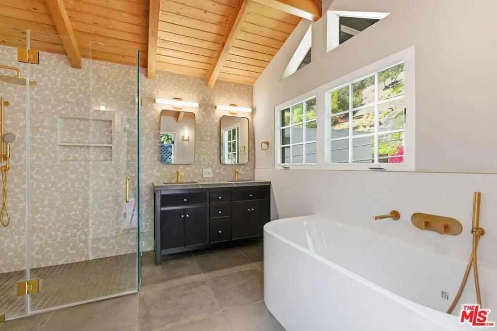 Private canyon retreat set along one of Benedict Canyon’s most serene streets, offering a rare balance of privacy and proximity just minutes from Beverly Hills, the Westside, and Sunset Boulevard. Surrounded by lush canyon landscapes, this upgraded 3 bedroom, 2.5 bath home features soaring vaulted ceilings, abundant natural light, and a warm rustic modern aesthetic. An open concept layout connects the living and dining areas to a well appointed kitchen, ideal for both everyday living and effortless entertaining. Large windows frame canyon greenery and fill the home with natural light. Thoughtful upgrades include Porcelanosa tile, premium Graff and Brizo fixtures, and heated floors in both full bathrooms. The primary suite offers a tranquil retreat with a walk in closet, spa inspired bath, and direct access to private outdoor space. Two additional bedrooms provide flexibility for guests, office, or creative use. Outdoor living is highlighted by a private patio set against a backdrop of mature greenery, ideal for quiet mornings or evening gatherings. Additional features include a three car carport, EV charging, and smart home upgrades. Located within the highly regarded Warner Avenue Elementary School district.