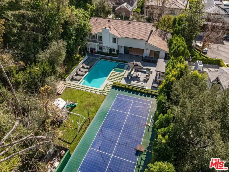 A timeless transitional estate tucked away on a quiet cul-de-sac in the coveted Deep Canyon enclave of BHPO. This beautifully sunlit residence blends modern elegance with effortless indoor-outdoor California living. Privately set back from the street, the 4-bedroom, 3.5-bath home offers exceptional scale, serenity, and resort-style amenities on an expansive 16,700+ square foot lot. Designed for both entertaining and everyday living, the gracious living room opens seamlessly to the outdoors. The spacious eat-in kitchen anchors the home with a large center island, double ovens, wine refrigerator, and an oversized walk-in pantry. A main-level suite provides flexibility for guests or live-in support. Upstairs, the expansive primary suite is a true sanctuary, featuring a dedicated office or lounge, dual walk-in closets, and a grand spa-like bath with luxurious his-and-hers sides. Two additional guest bedrooms share a well-appointed bath. The grounds are truly exceptional. The sprawling, private backyard is designed for year-round enjoyment and feels like a true family retreat. Amenities include a pool and spa, pickleball/basketball court, outdoor kitchen with built-in barbecue and bar, firepit lounge, swing set, and a whimsical tree house. There is ample open lawn and hidden garden spaces, offering plenty of room for little ones to explore, play, and roam freely, while adults entertain or relax in total privacy. Additional features include a bonus grassy yard, private seating terrace, sauna, 3-car garage, and EV charging. Ideally located within the sought-after Warner Avenue Elementary district and just minutes from The Glen Centre, with 24/7 security patrol. This immaculate home offers a rare combination of privacy, space, and resort-style living.