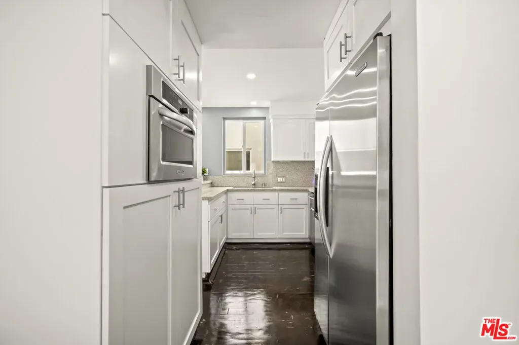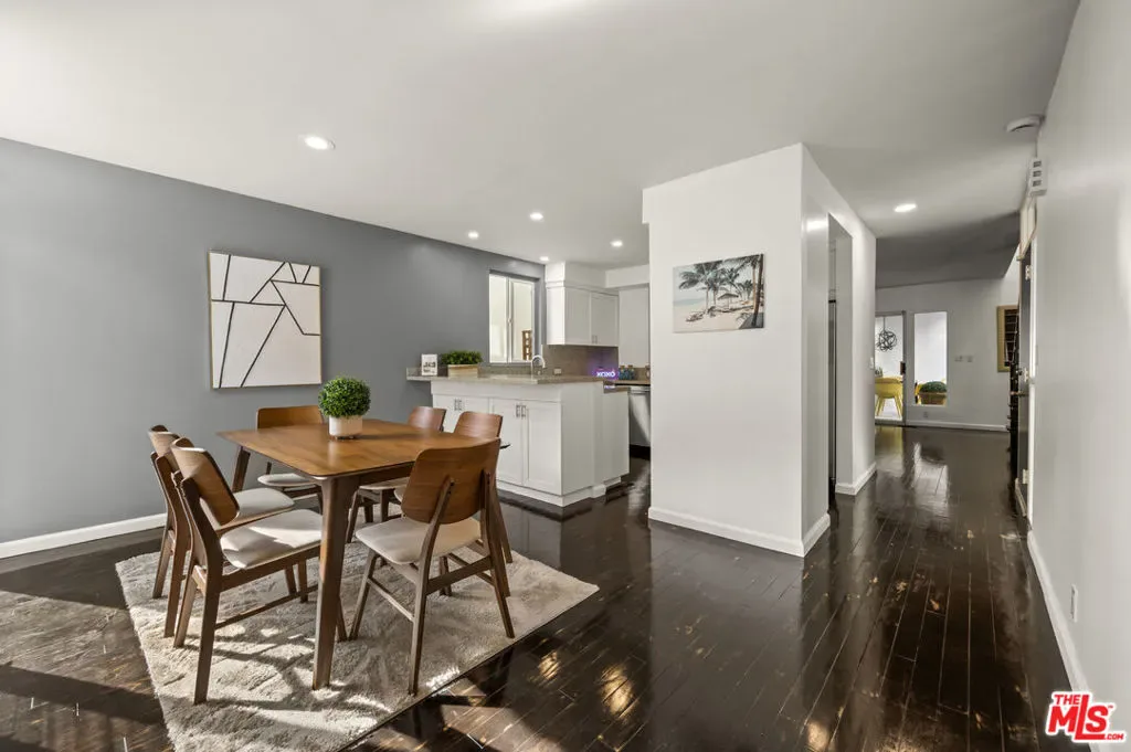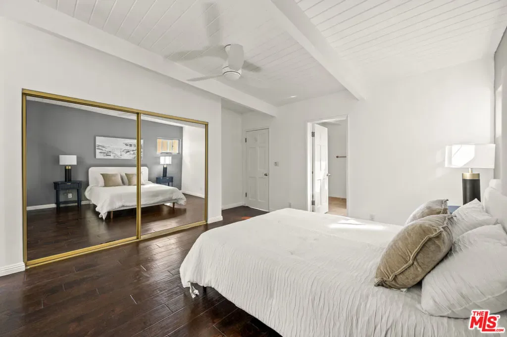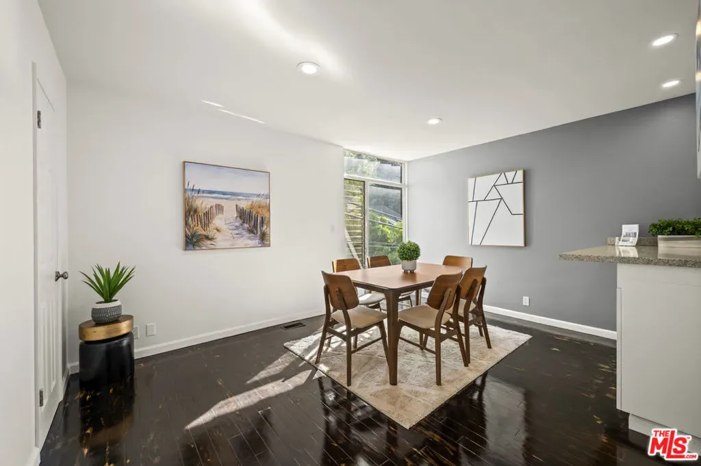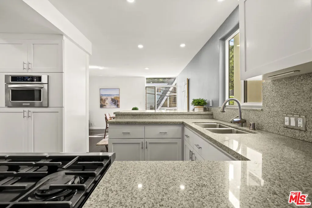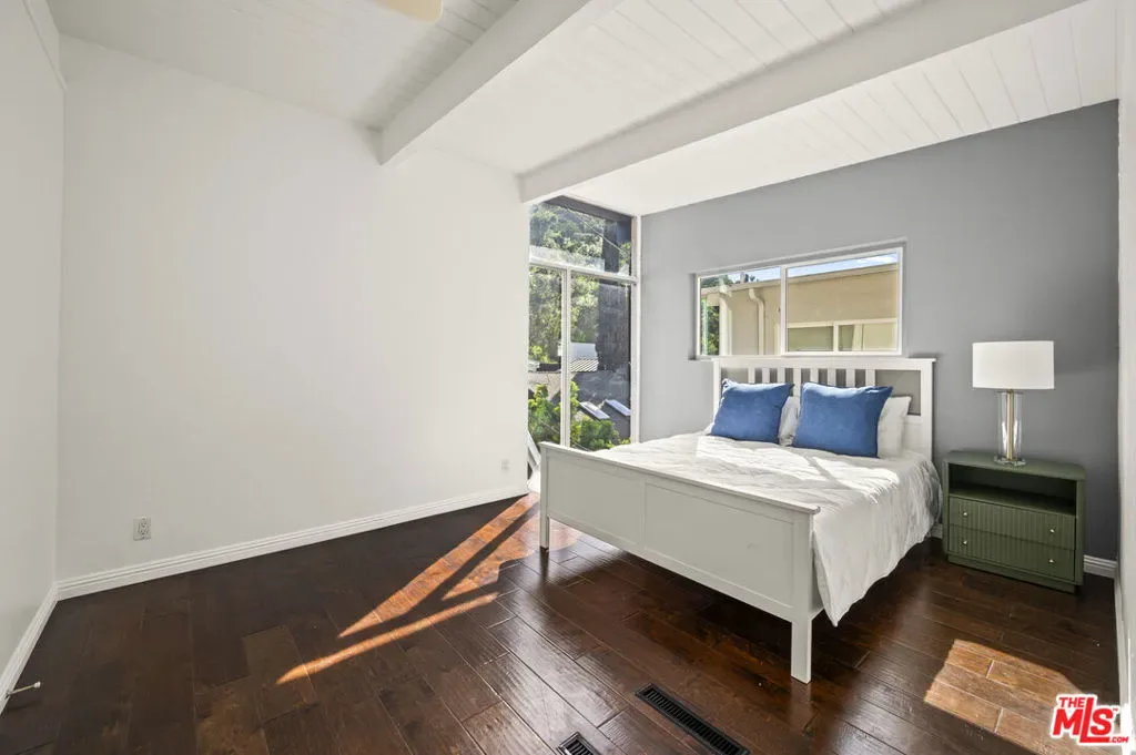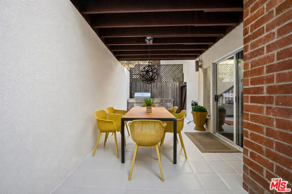 This stylish Mid-Century Modern 3BD + 2BA home is currently the lowest-priced property in Beverly Hills Post Office. Offering an incredible opportunity to own a single-family residence for less than many condos. Why pay high Beverly Hills HOA fees when you can enjoy the privacy, space, and freedom of your own home ! Step into a light-filled open living room featuring hardwood floors and a fireplace. All seamlessly flowing into a stylishly updated kitchen with stainless steel appliances, granite countertops, and a breakfast peninsula. Sliding glass doors from the living and dining areas open to a private patio w/BBQ perfect for a weekend bbq, friends and family gatherings, or entertaining. Upstairs, two bedrooms showcase charming wood-beamed ceilings and updated bathroom, off the carport a separate area or possible 3rd bedroom currently used as an office w/inside laundry attached. The primary suite features its own private outdoor sundeck retreat. Ideally located just minutes from both Beverly Hills. This home delivers the best of location, lifestyle, and value all without the burden of HOA fees.