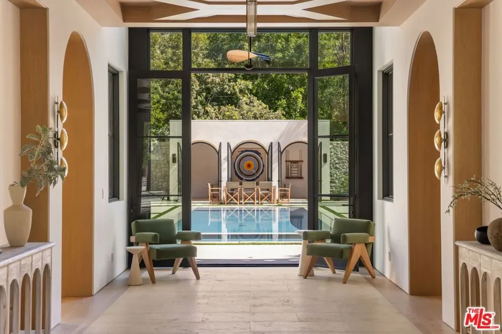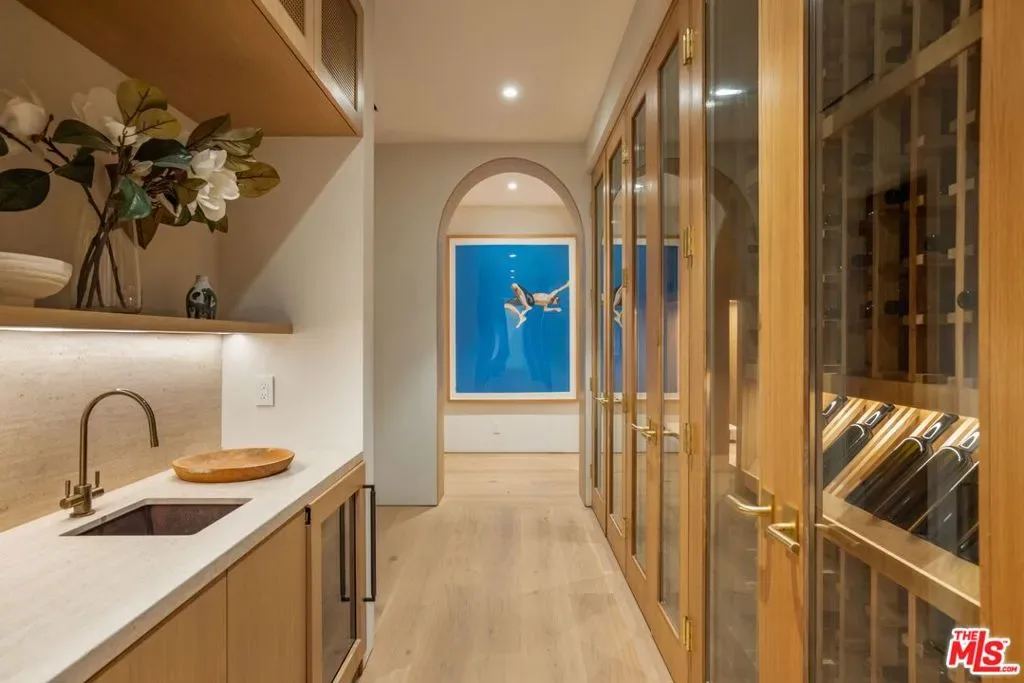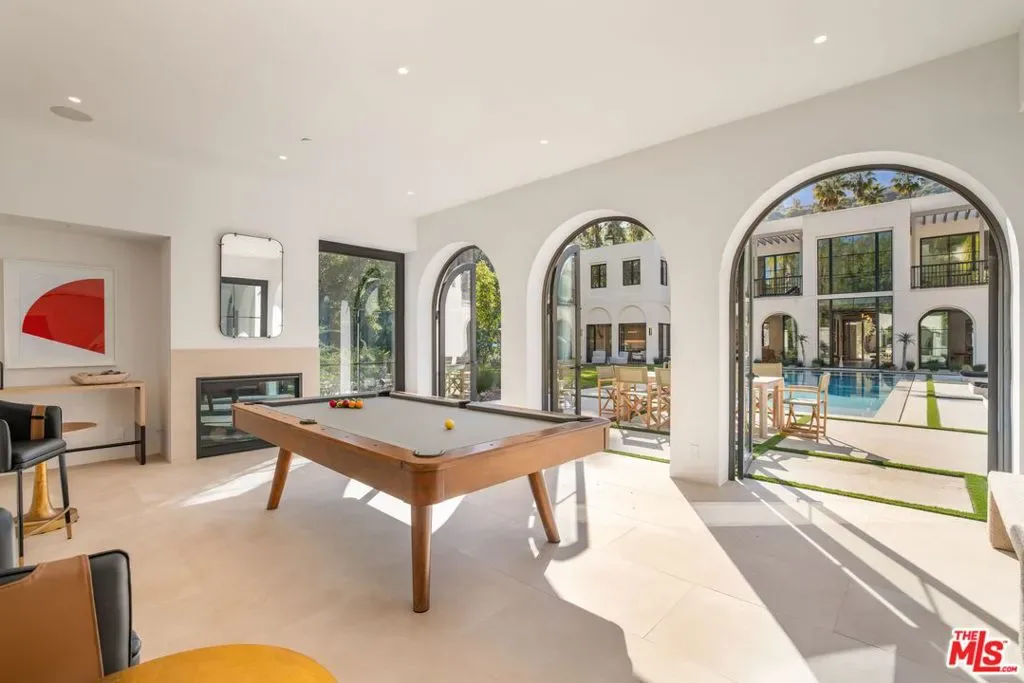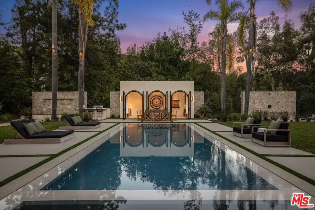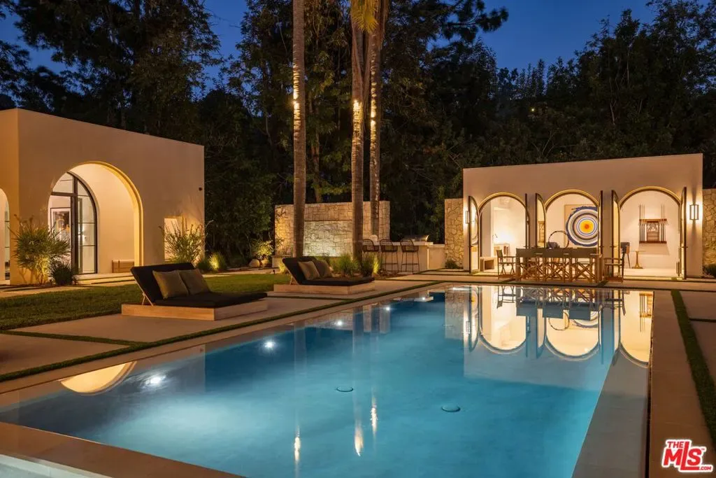The Liebe compound is a premier romantic destination home offering an enchanting mix of the intimate, the vibrant, and the tranquil. Redefining the urban sanctuary for the global stage, this 1.3-acre Moroccan-modern compound is a rare architectural estate perfectly positioned for private, sophisticated living and for Los Angeles’ upcoming spotlight during the World Cup and Olympic Games. The design, both vibrant, and filled with modern energy reflects a romantic classicism in the repetition of the arches and walk loggias that are a thematic emphasis for both the upper and lower levels throughout the household. The Loggias also act as a transition space allowing for moments of beauty and serenity as you enter and exit from the main home to the adjoining out buildings through sleek contemporary glass doors. Across four distinct structures, this nine-bedroom, fourteen-bathroom estate offers the ultimate zero-edge pool rivaling the finest hotels on the global stage, a private theater, gym structure, pool/gaming structure, in-house spa and a 600-bottle showcase wine wall. From the 15-car motor court and independent two-story staff house to the sprawling 2,400-square-foot primary sanctuary and three professional-grade kitchens, every inch is engineered for high-security, large-scale entertaining, and total seclusion. This is the very essence of a secret garden compound, both home and wellness center, a retreat from the bustle of the center of Beverly Hills just 10 minutes away. For those who have globetrotted their entire lives, this is a respite oasis, a home as a singular compound; your own personal palace and gardens sited behind gates and privacy. This is a destination home that gives way to an entire world of relaxation, serenity, health, and wellness.Approved plans ready to build a pickleball court while leaving the soccer field lawn in place and all surrounded by mature landscaping on a quiet street in the Estate Section of Benedict Canyon approximately 25 minutes to Los Angeles’ premier private airport – Van Nuys private, coveted Warner Avenue Elementary and 10-30 minutes to almost every top private school in Los Angeles. This is a prime example of new construction that delivers state of the art functionality with architectural romance.