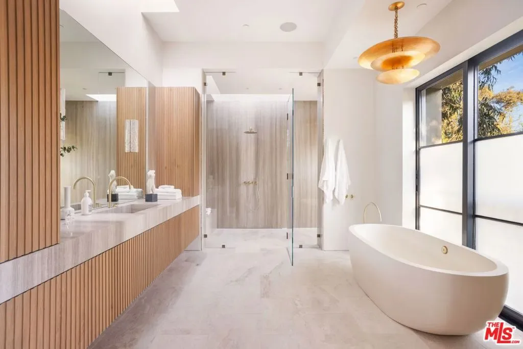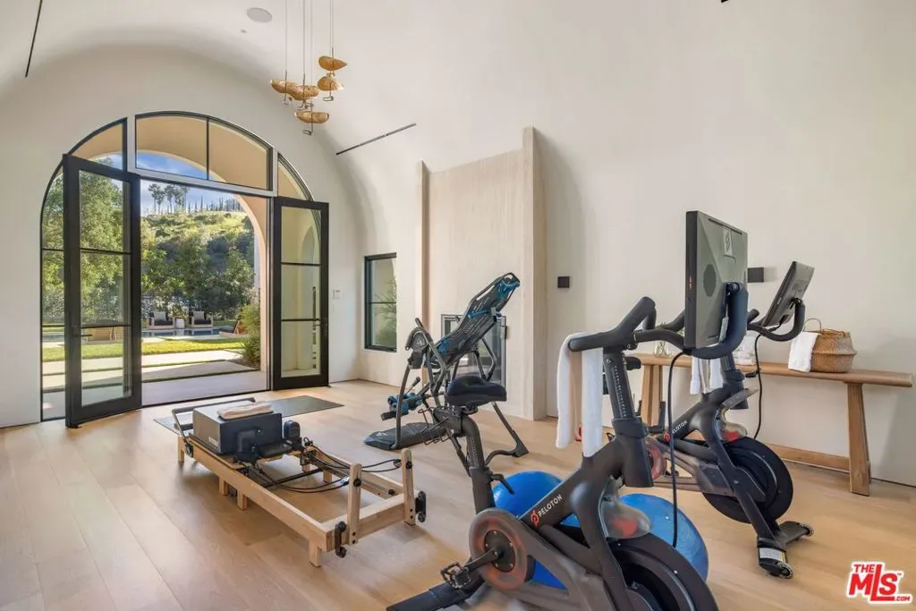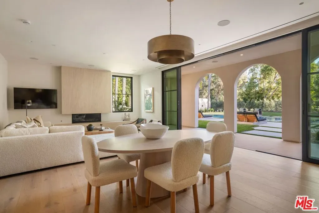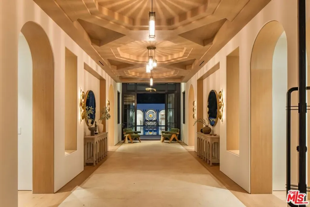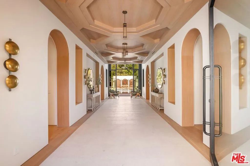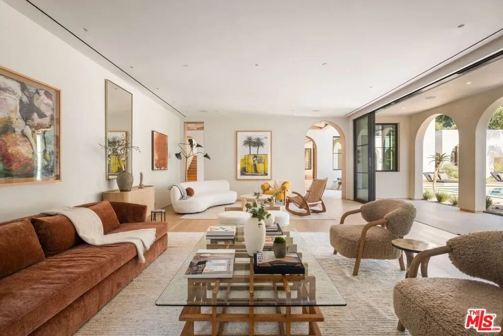 The Liebe compound is a premier romantic destination home offering an enchanting mix of the intimate, the vibrant, and the tranquil. Redefining the urban sanctuary for the global stage, this 1.3-acre Moroccan-modern compound is a rare architectural estate perfectly positioned for private, sophisticated living and for Los Angeles’ upcoming spotlight during the World Cup and Olympic Games. The design, both vibrant, and filled with modern energy reflects a romantic classicism in the repetition of the arches and walk loggias that are a thematic emphasis for both the upper and lower levels throughout the household. The Loggias also act as a transition space allowing for moments of beauty and serenity as you enter and exit from the main home to the adjoining out buildings through sleek contemporary glass doors. Across four distinct structures, this nine-bedroom, fourteen-bathroom estate offers the ultimate zero-edge pool rivaling the finest hotels on the global stage, a private theater, gym structure, pool/gaming structure, in-house spa and a 600-bottle showcase wine wall. From the 15-car motor court and independent two-story staff house to the sprawling 2,400-square-foot primary sanctuary and three professional-grade kitchens, every inch is engineered for high-security, large-scale entertaining, and total seclusion. This is the very essence of a secret garden compound, both home and wellness center, a retreat from the bustle of the center of Beverly Hills just 10 minutes away. For those who have globetrotted their entire lives, this is a respite oasis, a home as a singular compound; your own personal palace and gardens sited behind gates and privacy. This is a destination home that gives way to an entire world of relaxation, serenity, health, and wellness.Approved plans ready to build a pickleball court while leaving the soccer field lawn in place and all surrounded by mature landscaping on a quiet street in the Estate Section of Benedict Canyon approximately 25 minutes to Los Angeles’ premier private airport – Van Nuys private, coveted Warner Avenue Elementary and 10-30 minutes to almost every top private school in Los Angeles. This is a prime example of new construction that delivers state of the art functionality with architectural romance.