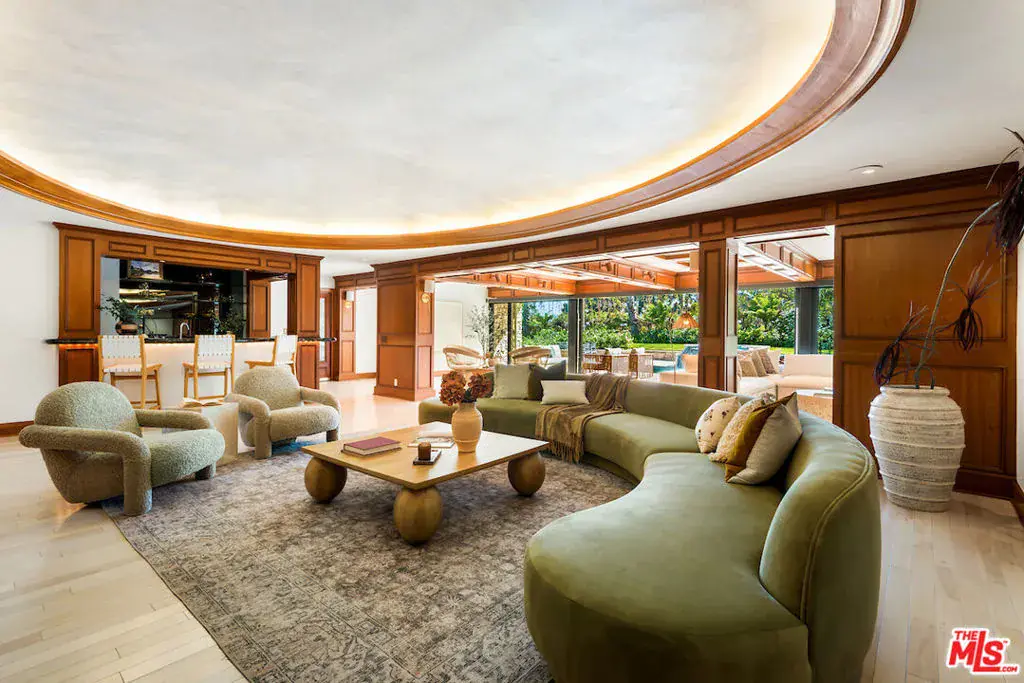 Rare opportunity in prime Beverly Hills to acquire a flat, sprawling and rare 7,885 square foot single story home on an expansive 42,550 square foot lot bordering the iconic Los Angeles Country Club. Extraordinarily private and secure, a grand gated entry and gracious driveway lead to a spectacular motor court with parking for over 20 cars along with a three car garage. The inviting single-story home features 6 bedrooms and 8 baths, entertainer’s dining room, theater, and gourmet kitchen with breakfast room on the view. Separate one-bedroom guest house with sitting area and adjoining spacious gym with indoor basketball court. Lushly landscaped grounds include sparkling pool, spa, outdoor kitchen, sports court, and golf course views. Surrounded by major Beverly Hills estates,incredible value for a property of this caliber.