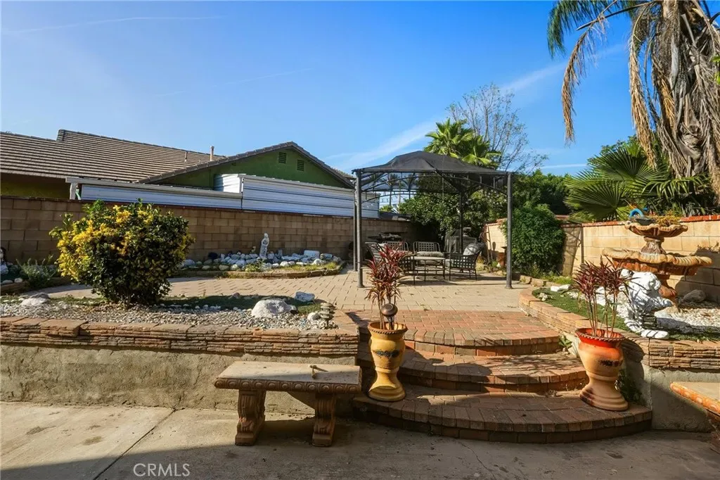 Enjoy a spacious backyard complete with a patio and kiosk, perfect for relaxing or hosting gatherings. The yard also offers excellent potential for a future gardening setup or personalized outdoor space.