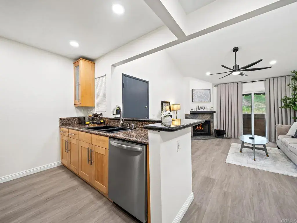Listed at $399,000 and open to all conventional grant programs. VA buyers welcome! Step into this turnkey, move-in-ready 2nd-floor condo, perfect for first-time buyers, downsizers, or high-demand housing for military and healthcare providers. This VA-approved home features recent premium-grade upgrades, neutral paint, vaulted ceilings, updated LVP flooring, recessed lighting, and new ceiling fans throughout. The open living area boasts a beautiful tile fireplace, while the kitchen features granite countertops, custom real wood cabinets, a modern black sink, and new premium stainless appliances. Positioned as a hillside-facing unit for maximum privacy, enjoy quiet views through newer windows, new coverings, and a new patio slider. Energy efficent! The primary suite is a true retreat with a large walk-in closet and a separate vanity area upgraded with quartz countertops, a high backsplash, and high-end, custom-designed cabinetry expanded for superior storage. Highlights include a new AC unit, private balcony with storage, carport parking, and a resort-style pool. Ideally located with quick access to Hwy 54, military bases, hospitals, and Rohr Park. With area rents at $2,200/mo, it’s a prime investment or low-maintenance home! Disclaimer: All info deemed reliable but not guaranteed; should be independently verified.