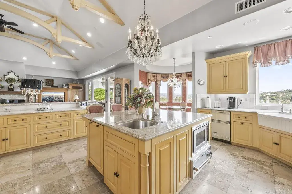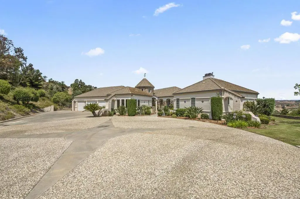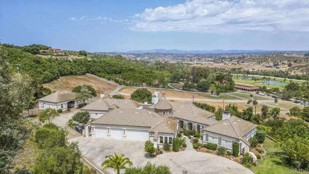 Gorgeous single-story 4.53-acre estate with breathtaking views! Upgrades shine throughout this private 4,350 sqft home with dramatic ceilings and open floor plan in the highly sought-after neighborhood of Hialeah Rancho Estates. Retreat to your outdoor dining area and glass viewing gazebo with a cozy fireplace, surrounded by majestic landscapes and the peaceful countryside. Entertain friends and family and enjoy a glass of wine while admiring the sweeping panoramic views. Picture-perfect sunsets from nearly every room in this elegant home! Watch horses run and play in the distance while you sip your morning coffee amidst your grove of 100 mature avocado trees, and breathe in the cool ocean breeze from the San Luis Rey River Valley. One wing of this estate includes two guest bedrooms, each with a private entrance, kitchenette, and upgraded en suite bath—perfect for guests or multigenerational living! Your dream horse property awaits with a detached 1,000 sqft barn featuring three horse stalls and a tack room, easily convertible to a large garage, workshop, or additional guest home. Owned solar with 40 panels! A pebble stone-gated entry leads to your spacious home featuring expansive windows flooded with natural light, gorgeous travertine, marble, Brazilian Cherry wood, tall baseboards, and custom wood beams. The original owners spared no expense building this estate with five fireplaces, custom built-ins, and high-end finishes, this home is stunning inside and out! The chef’s kitchen is a masterpiece: open and bright, with a farmhouse sink overlooking tranquil views for days, granite countertops with a porcelain artisan backsplash, built-in Sub-Zero refrigerator, Viking and Bosch stainless steel appliances, and a butler’s pantry. The breakfast nook and dining room make you feel like royalty! Gorgeous hardware, luxury Venetian chandeliers, custom window coverings, plantation shutters. As you walk through the flowing floor plan, you’ll find beautiful bathrooms, spacious secondary bedrooms and office, and custom built-ins. Even the laundry room is exquisite with granite countertops, ample storage for crafts or hobbies, and potential to be converted into an additional bedroom. The primary retreat features a marble Jacuzzi spa, dual marble vanity, fireplace, expansive walk-in closet, and a sitting area that opens to the spacious backyard. Outside, you’ll find courtyards and sitting areas, a built-in BBQ, water features, and manicured tropical landscaping throughout the residence. There is ample room for whatever you can dream of. An infinity pool overlooking mountain views as far as the eye can see is waiting to be built! The usable land has room to imagine a vineyard, garden, pool, or pickleball court. A four-car garage with converted workshop is ready for all your toys. Roses and trees of all varieties including avocado, orange, apple, fig, grapefruit, lemon, lime, and persimmon adorn the well cared for grounds. You’ll love this beautiful move-in-ready home in a wonderful location! One of only 19 custom-designed homes in Hialeah Rancho Estates. This home is situated on a private and serene road with endless views overlooking the prestigious Moody Creek Farms and San Luis Rey Downs Equestrian Centers. Bonsall is known for its calm lifestyle, natural surroundings, and exceptional weather, just 30 minutes to beaches and wineries. The Bonsall marketplace offers five-star restaurants, a cinema, and Daniels grocery store. Enjoy privacy and space while still being close to top-rated schools and shopping! Additional highlights include: three AC zones, tankless water heater, solid Alder wood doors, water filtration system, epoxy garage, screendoors, central vacuum, designer stonework, recessed lighting, arched doorways, decorative iron gate, security cameras, RV drain and electric hookups, wet bar with gold chiseled sink and Viking wine cooler, retractable sun awning, and surround sound.
