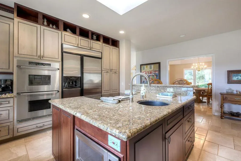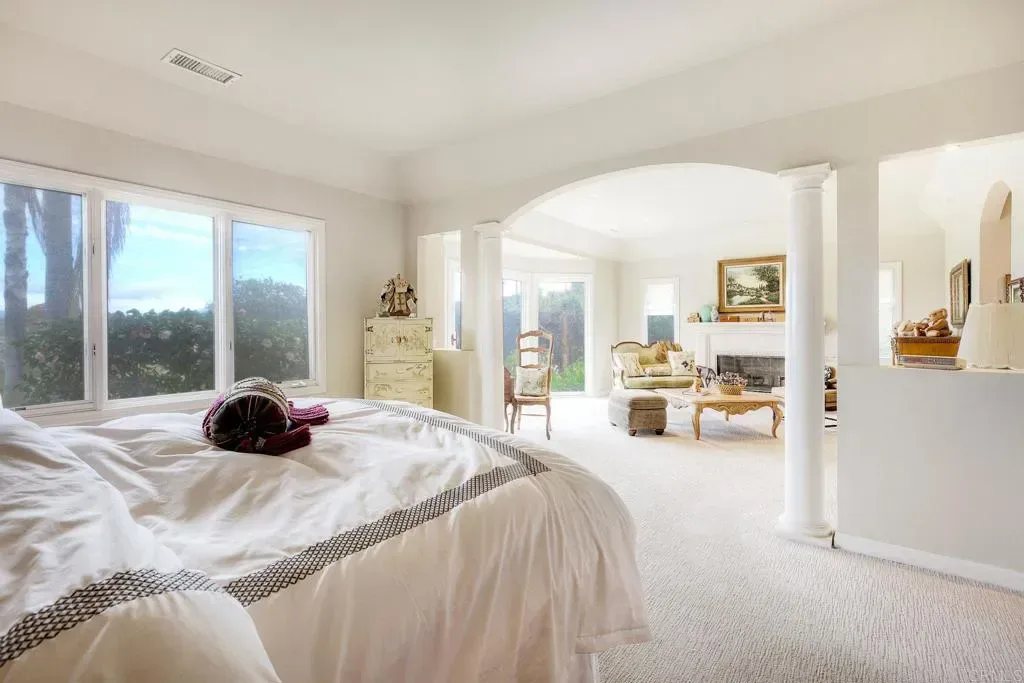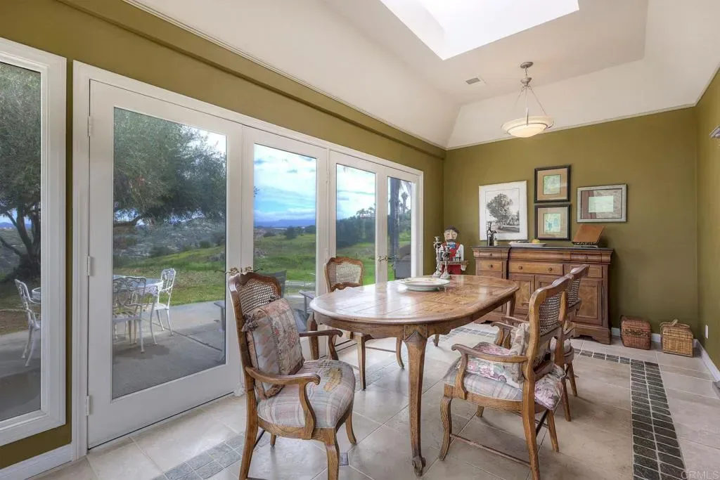 Welcome home to your own private estate nestled in the picturesque hills of Bonsall. Set on over four sprawling acres, this SINGLE STORY custom residence offers the perfect blend of privacy, exclusivity, and timeless elegance. Step through the formal entry and you’re immediately greeted by soaring ceilings and walls of windows that flood the home with natural light. The formal living area showcases wide-plank flooring, a statement fireplace, and French doors that open seamlessly to the backyard — creating an effortless indoor-outdoor flow. Just off the entry, a dedicated office provides flexibility and can easily be converted back into a bedroom if desired. The formal dining room features a recessed ceiling and custom chandelier, setting the stage for memorable gatherings. Travertine flooring leads you into the beautifully remodeled kitchen, complete with custom cabinetry, granite countertops, double ovens, and even a warming drawer — thoughtfully designed for hosting holiday dinners and entertaining with ease. The adjacent family room offers a stunning stone fireplace, perfect for cozy winter evenings. An added sunroom extends the living space and provides the ideal setting to relax while taking in the breathtaking hillside views. Toward the rear of the home, you’ll find an additional office space and full bathroom, offering versatility for guests or multigenerational living. On the opposite wing, the primary suite serves as a true retreat — generously sized with a private sitting area and its own fireplace, designed for comfort and seclusion. Surrounded by rolling green hills and set well apart from neighboring properties, this exceptional estate delivers the peace, space, and lifestyle you’ve been searching for.