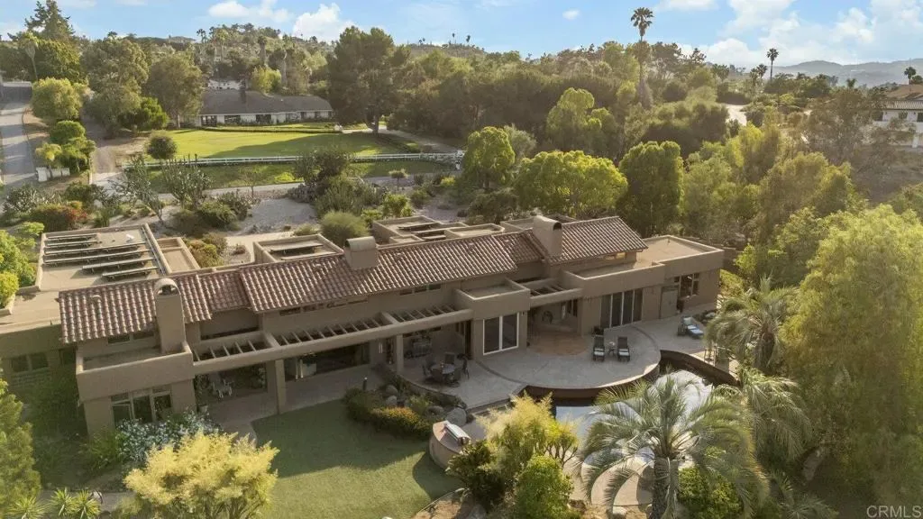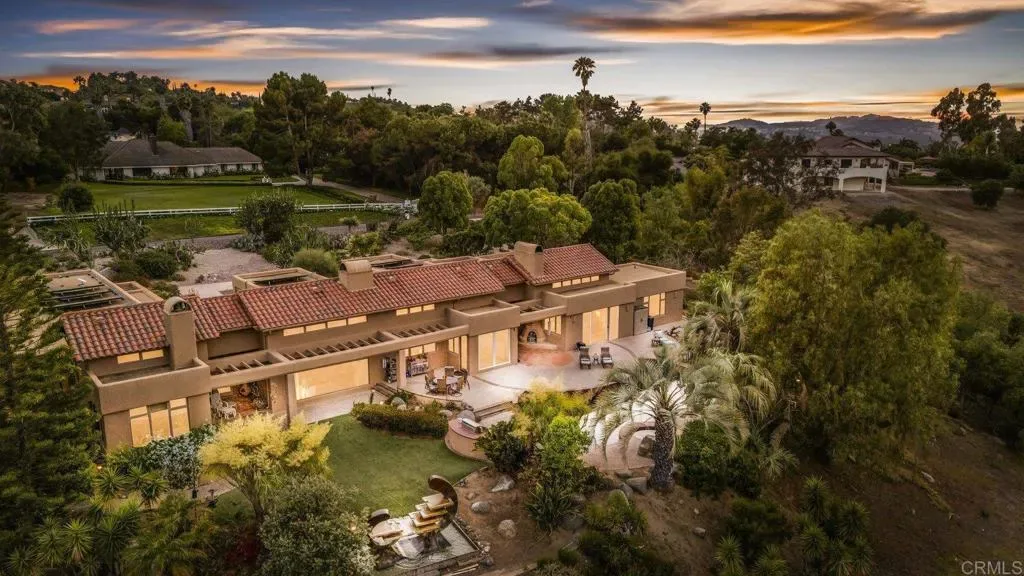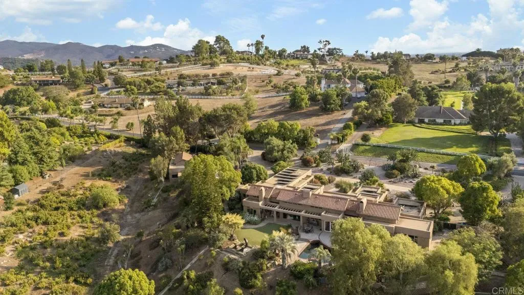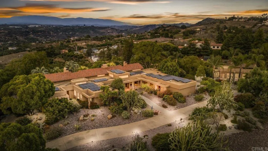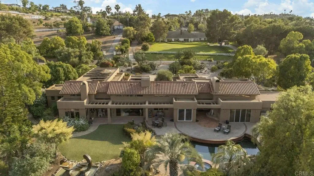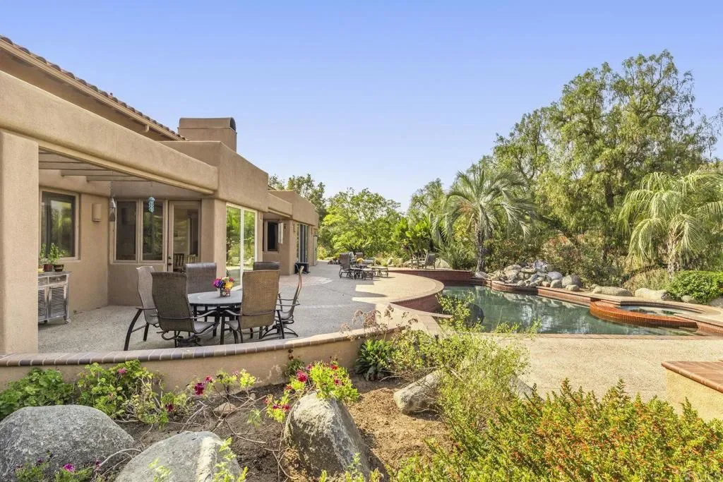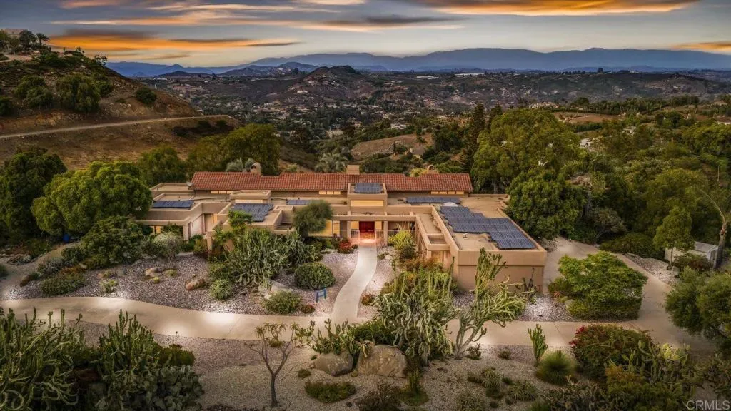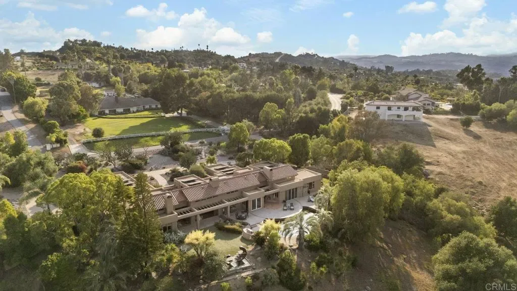 One of a kind custom single story home nestled in a tranquil setting, surrounded by bountiful gardens! No HOA This magazine worthy Sante Fe style ranch house features 4 bedrooms, 6 bathrooms spread out over 5,817 of meticulously designed living space. As you step into this architectural masterpiece built naturally into the surrounding landscape, you will be amazed by the 5.89 acres of awe inspiring views. The chef’s kitchen is a culinary haven, featuring a large kitchen island, SubZero fridge, Wolf Appliances oven, DCS cooktop, and ample space to spread out and make your favorite meal. Host unforgettable events in the multiple living spaces or take the festivities outdoors to the entertainer’s paradise, spacious patio, Mark Stasz custom sculpture and water features with an inviting in-ground saltwater pool & spa. Luscious landscaping includes fully irrigated drought tolerant xeriscaping, an income producing protea farm, and plus orchard featuring citrus and fig trees. After a long day, relax and unwind in the resort like oversize primary retreat featuring soaking tub, cedar lined walk in closet, sauna providing a sense of solitude. Enjoy energy efficiencies with owned solar panels and full backup generator keeping your electricity bills at a minimum. Tailor made oversized garages with custom car lift and fully operating 1200 square foot woodshop, provides plenty of room to store all over your vehicles, toys while enjoying your favorite hobbies. Don’t miss the opportunity to own a one-of-a-kind oasis that blends classic California living with extraordinary beauty. 30663 Via Maria Elena is not just a home it is a lifestyle!