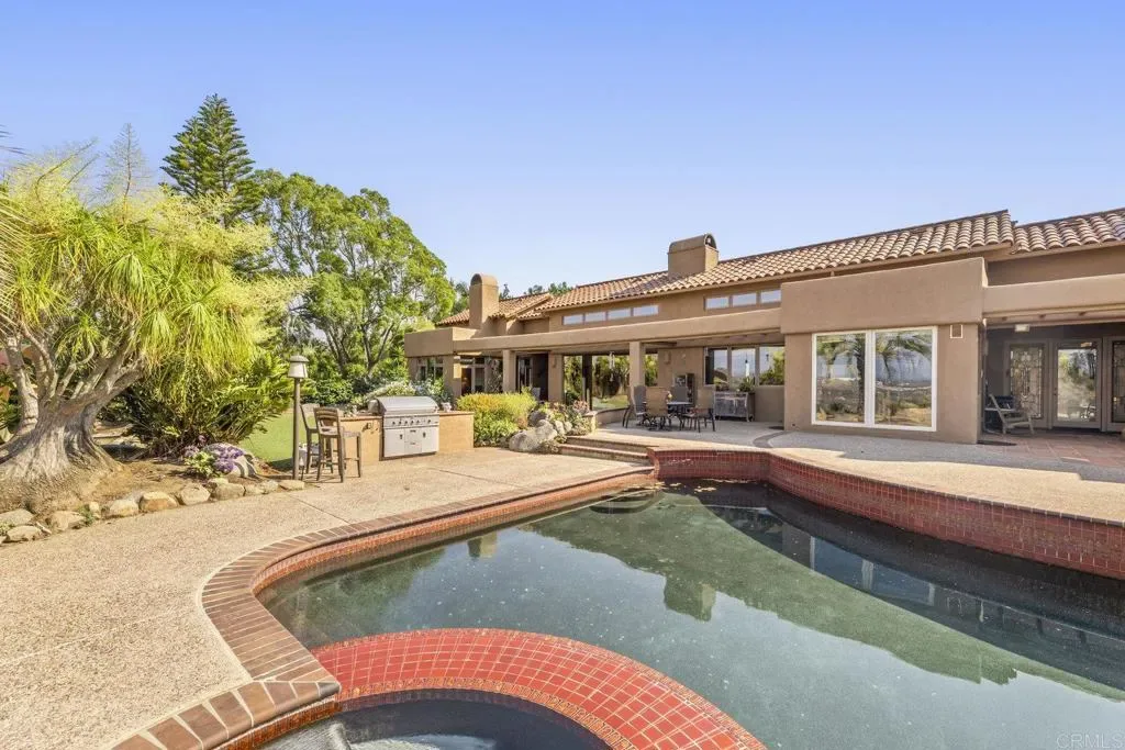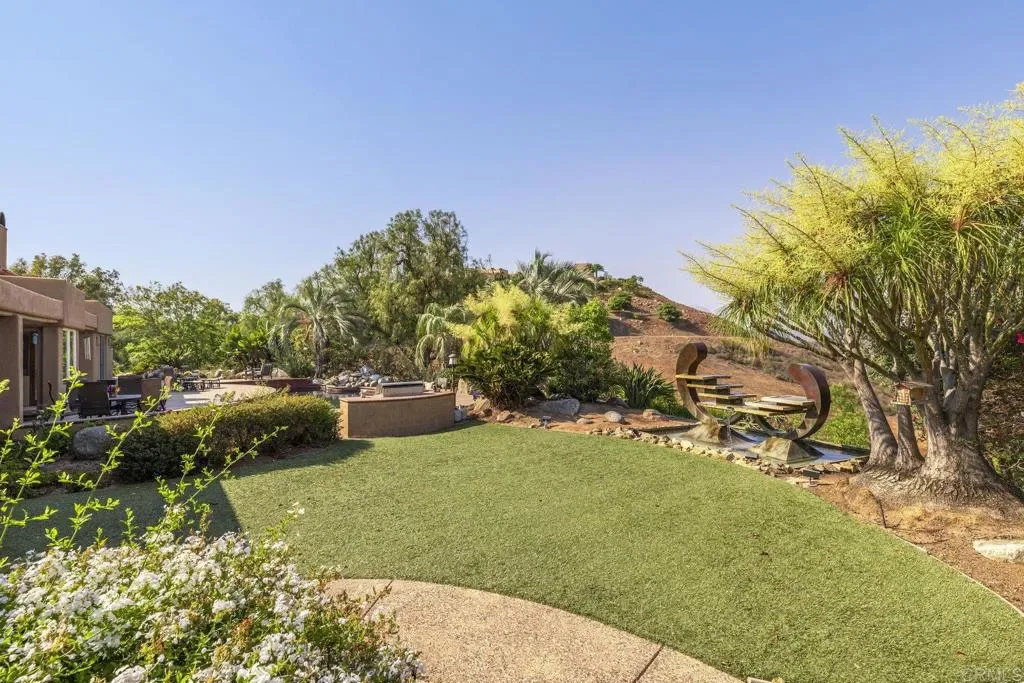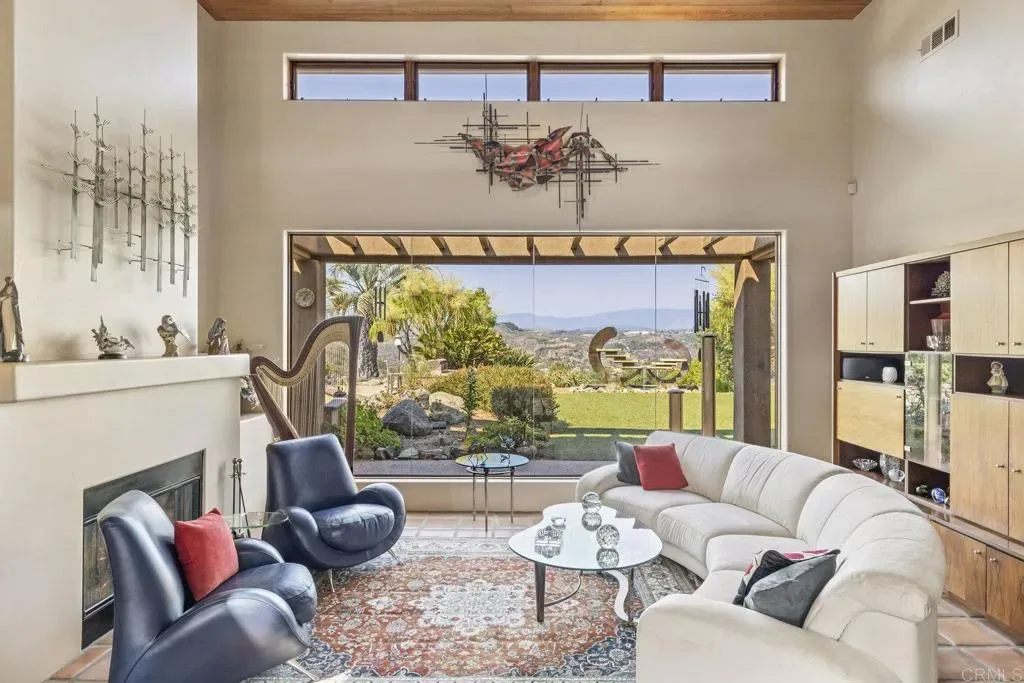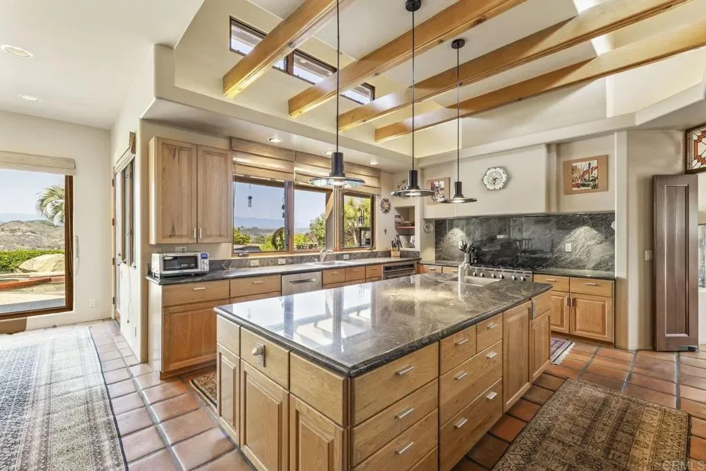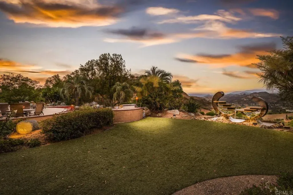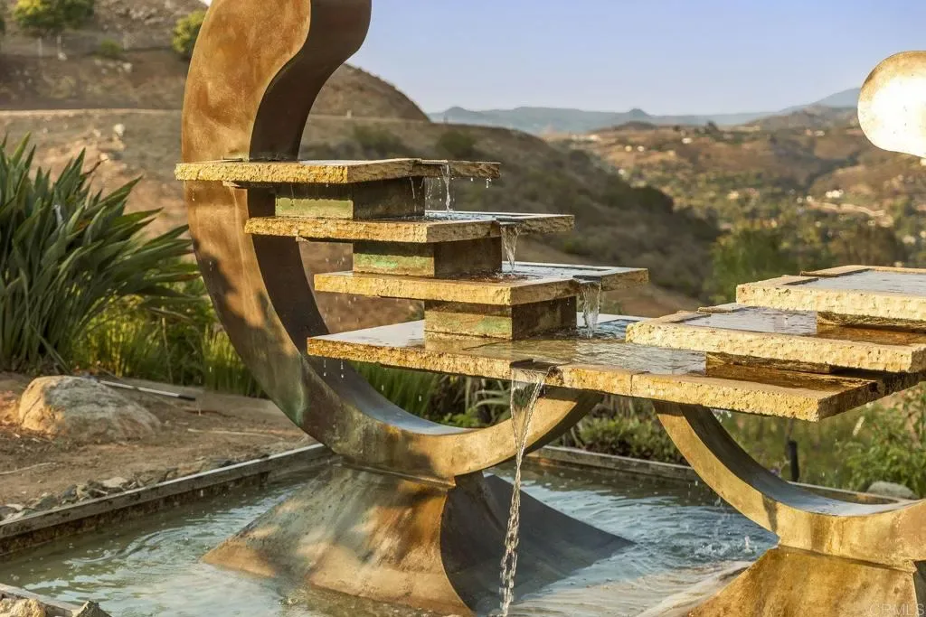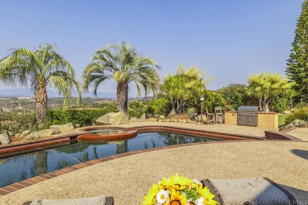 One of a kind custom single story home nestled in a tranquil setting, surrounded by bountiful gardens! No HOA This magazine worthy Sante Fe style ranch house features 4 bedrooms, 6 bathrooms spread out over 5,817 of meticulously designed living space. As you step into this architectural masterpiece built naturally into the surrounding landscape, you will be amazed by the 5.89 acres of awe inspiring views. The chef’s kitchen is a culinary haven, featuring a large kitchen island, SubZero fridge, Wolf Appliances oven, DCS cooktop, and ample space to spread out and make your favorite meal. Host unforgettable events in the multiple living spaces or take the festivities outdoors to the entertainer’s paradise, spacious patio, Mark Stasz custom sculpture and water features with an inviting in-ground saltwater pool & spa. Luscious landscaping includes fully irrigated drought tolerant xeriscaping, an income producing protea farm, and plus orchard featuring citrus and fig trees. After a long day, relax and unwind in the resort like oversize primary retreat featuring soaking tub, cedar lined walk in closet, sauna providing a sense of solitude. Enjoy energy efficiencies with owned solar panels and full backup generator keeping your electricity bills at a minimum. Tailor made oversized garages with custom car lift and fully operating 1200 square foot woodshop, provides plenty of room to store all over your vehicles, toys while enjoying your favorite hobbies. Don’t miss the opportunity to own a one-of-a-kind oasis that blends classic California living with extraordinary beauty. 30663 Via Maria Elena is not just a home it is a lifestyle!