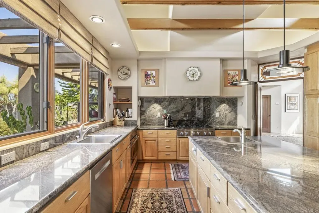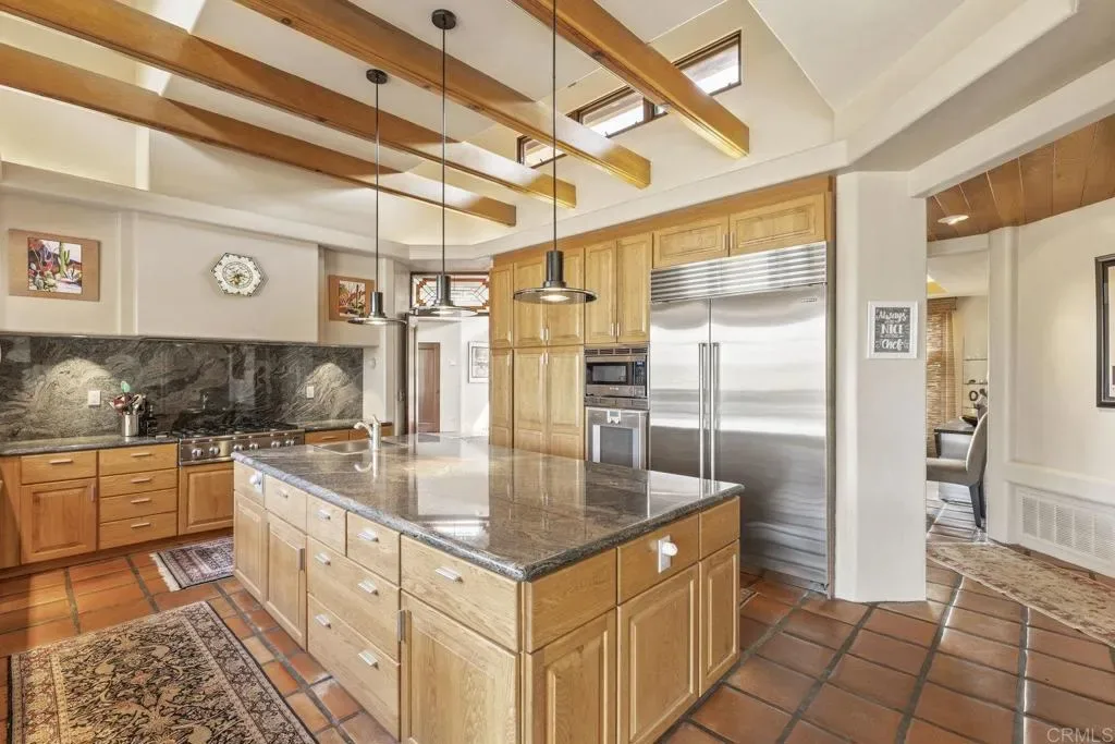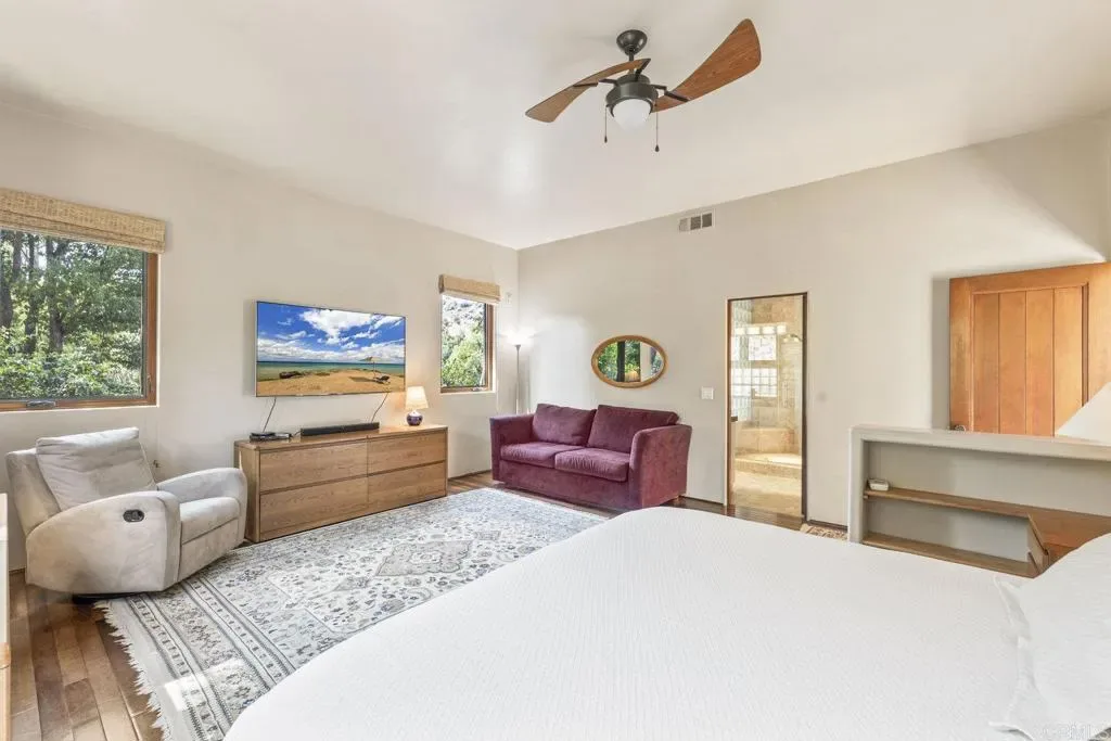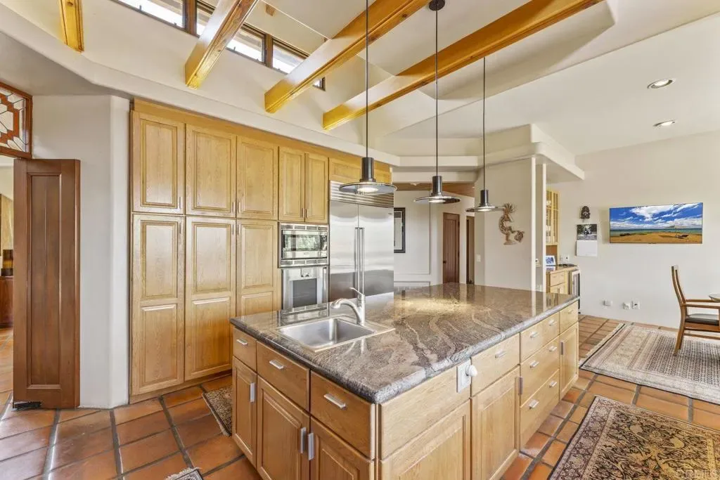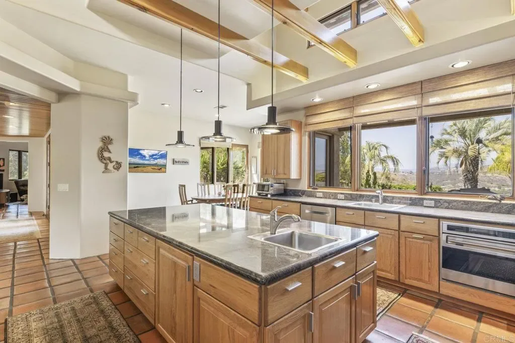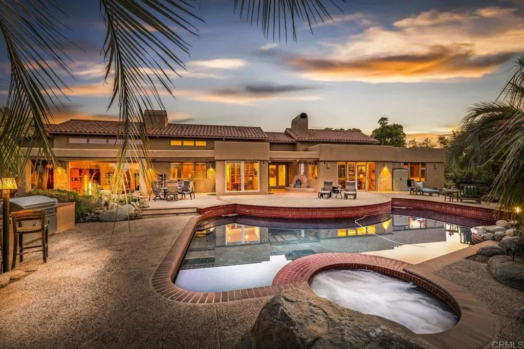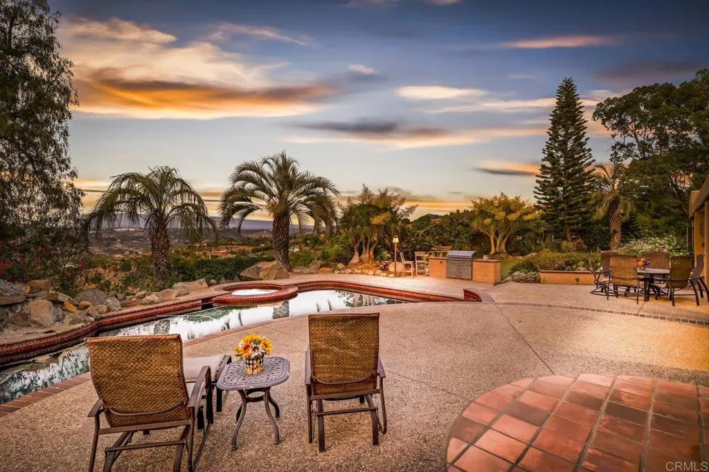 One of a kind custom single story home nestled in a tranquil setting, surrounded by bountiful gardens! No HOA This magazine worthy Sante Fe style ranch house features 4 bedrooms, 6 bathrooms spread out over 5,817 of meticulously designed living space. As you step into this architectural masterpiece built naturally into the surrounding landscape, you will be amazed by the 5.89 acres of awe inspiring views. The chef’s kitchen is a culinary haven, featuring a large kitchen island, SubZero fridge, Wolf Appliances oven, DCS cooktop, and ample space to spread out and make your favorite meal. Host unforgettable events in the multiple living spaces or take the festivities outdoors to the entertainer’s paradise, spacious patio, Mark Stasz custom sculpture and water features with an inviting in-ground saltwater pool & spa. Luscious landscaping includes fully irrigated drought tolerant xeriscaping, an income producing protea farm, and plus orchard featuring citrus and fig trees. After a long day, relax and unwind in the resort like oversize primary retreat featuring soaking tub, cedar lined walk in closet, sauna providing a sense of solitude. Enjoy energy efficiencies with owned solar panels and full backup generator keeping your electricity bills at a minimum. Tailor made oversized garages with custom car lift and fully operating 1200 square foot woodshop, provides plenty of room to store all over your vehicles, toys while enjoying your favorite hobbies. Don’t miss the opportunity to own a one-of-a-kind oasis that blends classic California living with extraordinary beauty. 30663 Via Maria Elena is not just a home it is a lifestyle!