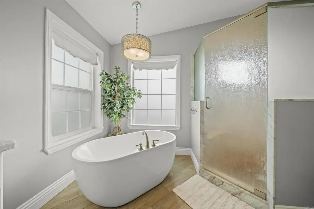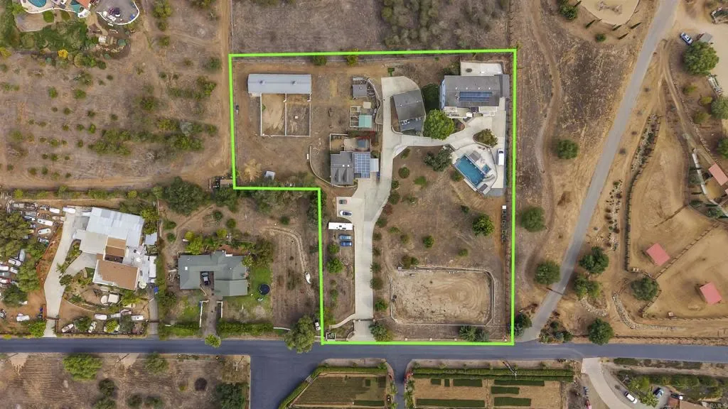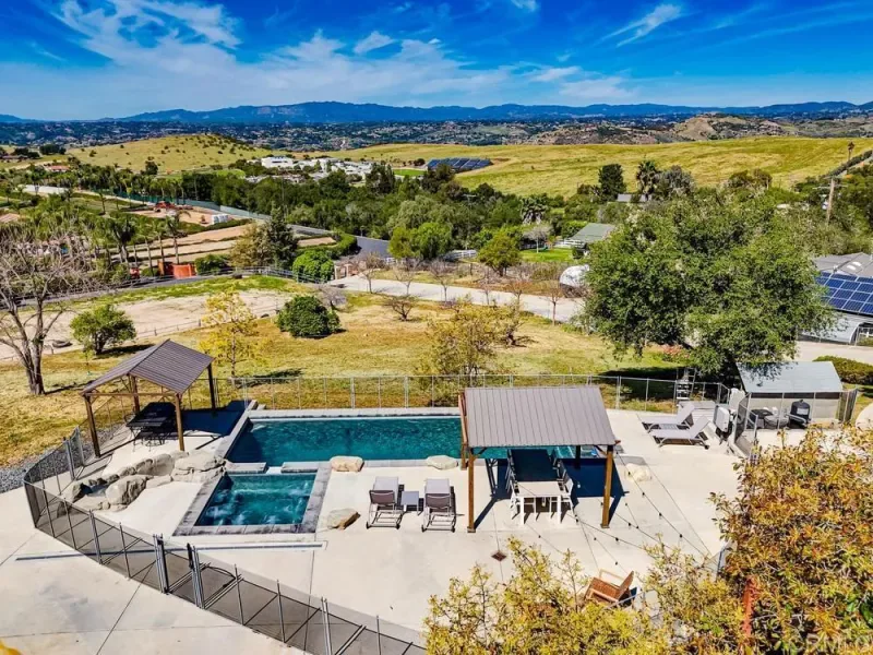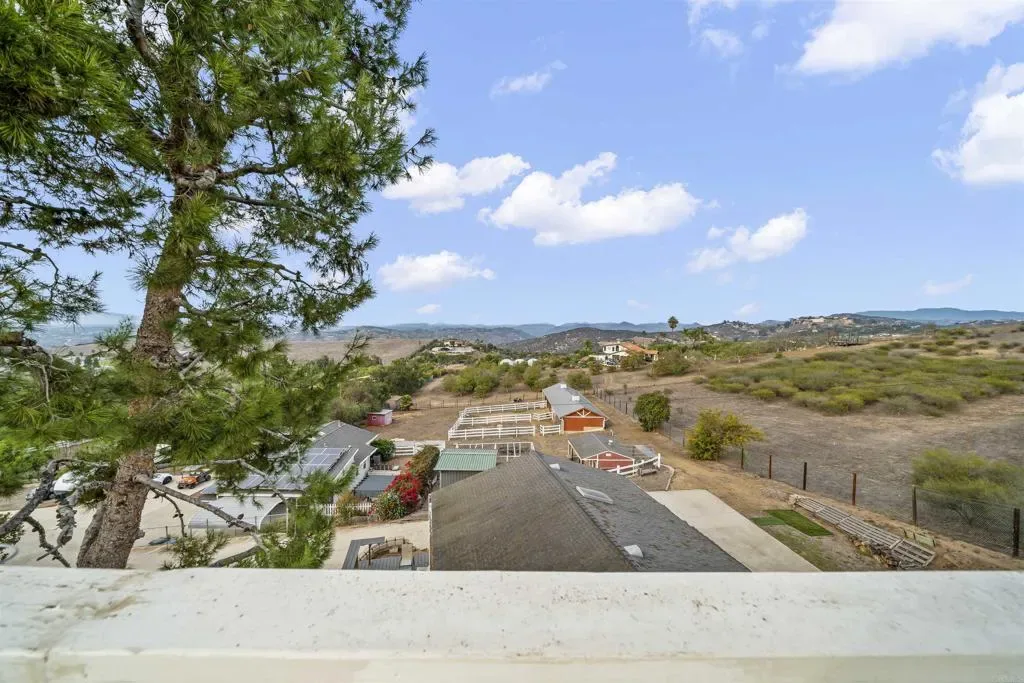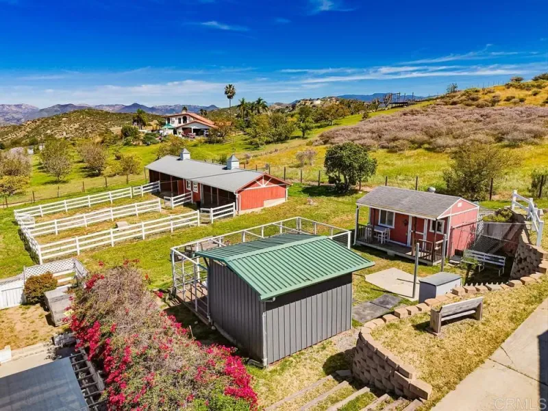 Seller will entertain offers between $2,144,000 – $2,250,000. Incredible versatility and stunning panoramic views await at this equestrian estate, which features THREE RESIDENCES on a highly developed 2.35 acre lot. The 3,465 sq ft main house offers soaring ceilings, beautiful finishes, a whole house fan, central vac, laundry chute, sub-level with more storage, 4 bedrooms AND an attached 1 bed/1bath apartment with a separate entrance. The 1,100 sq ft detached guest house offers 3 beds (1 is an optional bedroom/den), 2 full baths and a private backyard. There is new HVAC equipment for all 3 residences and owned solar energy systems on both the main house and detached guest house. Another detached building houses a 3-car garage and bonus room (currently used as an office) with a half bath. Enjoy a NEW high-end pool with a safety enclosure, large patio, waterslide, grotto, LED lights, and AOP Ozone system for excellent water quality. Rinse off after a swim in the enclosed outdoor bathroom with a shower. A charming red barn offers 2 oversized stalls with runs, a hay room and a tack room. An outdoor riding arena completes this amazing horse property. A large chicken coop with run is set up for collecting fresh eggs each morning. Multiple fruit and avocado trees and large planter boxes complete the home garden. This fully-fenced property with a gated driveway is located on a well-maintained private road in Bonsall, only 30 minutes from the beach in Oceanside. Experience coastal breezes and even a view of the ocean on a clear day from this hilltop home!