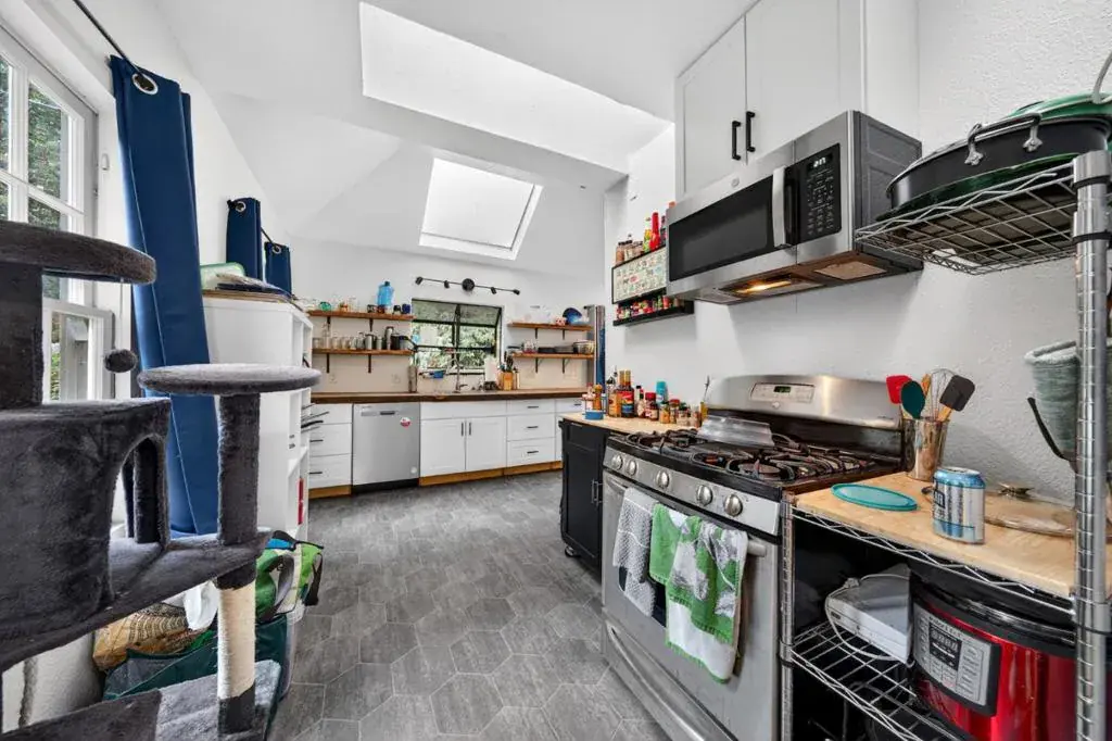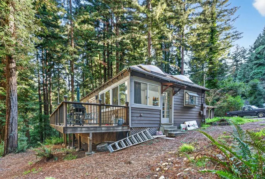 Welcome to 15194 Big Basin Way in Boulder Creek. This rare property offers two homes on nearly an acre of lush forested land with private creek frontage and river access. Winding paths through towering redwoods create a serene mountain retreat that feels secluded while remaining close to town. Both homes include indoor laundry and decks overlooking the surrounding forest. The main A-frame residence is approximately 1,775 sq. ft. and features three bedrooms and two bathrooms. Large windows and soaring ceilings fill the open living area with natural light and forest views. The remodeled kitchen includes quartz and butcher block countertops, stainless steel appliances, custom cabinetry, a Sub-Zero refrigerator, and a pantry. The home has also benefited from meaningful functional and infrastructure upgrades, reflecting thoughtful improvements that extend well beyond cosmetic updates. The second home offers approximately 1,185 sq. ft. with a spacious bedroom, bathroom, and flexible living area, along with an updated kitchen featuring a live-edge wood countertop and garden window. An oversized driveway, three-car garage, easy Highway 9 access, proximity to Big Basin, and a short drive to downtown Boulder Creek complete this exceptional property.