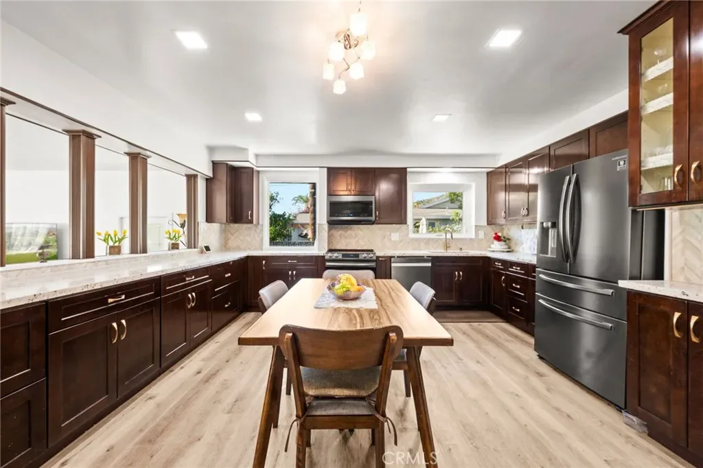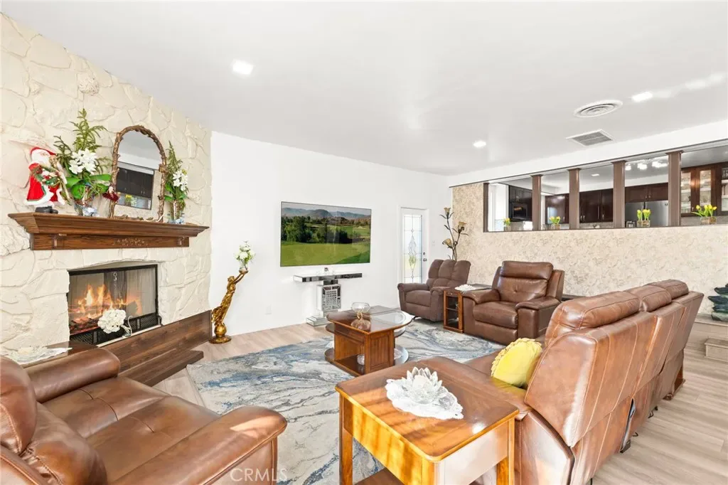 Welcome to this beautifully remodeled single-story home located in the highly sought-after city of Bradbury, where comfort, privacy, and community come together. This 4-bedroom, 2-bathroom residence offers a bright, open layout designed for modern family living and effortless entertaining. The home features a welcoming living room with a classic fireplace as well as a spacious family room with a second fireplace, creating multiple areas to gather and relax. The family room flows into a designated dining area and includes a built-in wine rack, making it ideal for family dinners and special occasions. Just off the family room, a generously sized covered patio provides the perfect space to enjoy the outdoors year-round, whether relaxing or entertaining. The updated kitchen is equipped with granite countertops, ample prep space, and a modern electric range, blending style with everyday functionality. Recent upgrades include updated electrical and plumbing systems and a newer air conditioning system, offering peace of mind and year-round comfort. Outside, the thoughtfully landscaped yard is surrounded by mature trees, offering a sense of tranquility and an abundance of local wildlife—creating a true retreat-like setting. Located in a quiet, family-friendly neighborhood close to top-rated schools, shopping, and dining, with convenient access to the 210 and 605 freeways, this Bradbury home delivers the perfect balance of serene living and everyday convenience. This is a must see!
