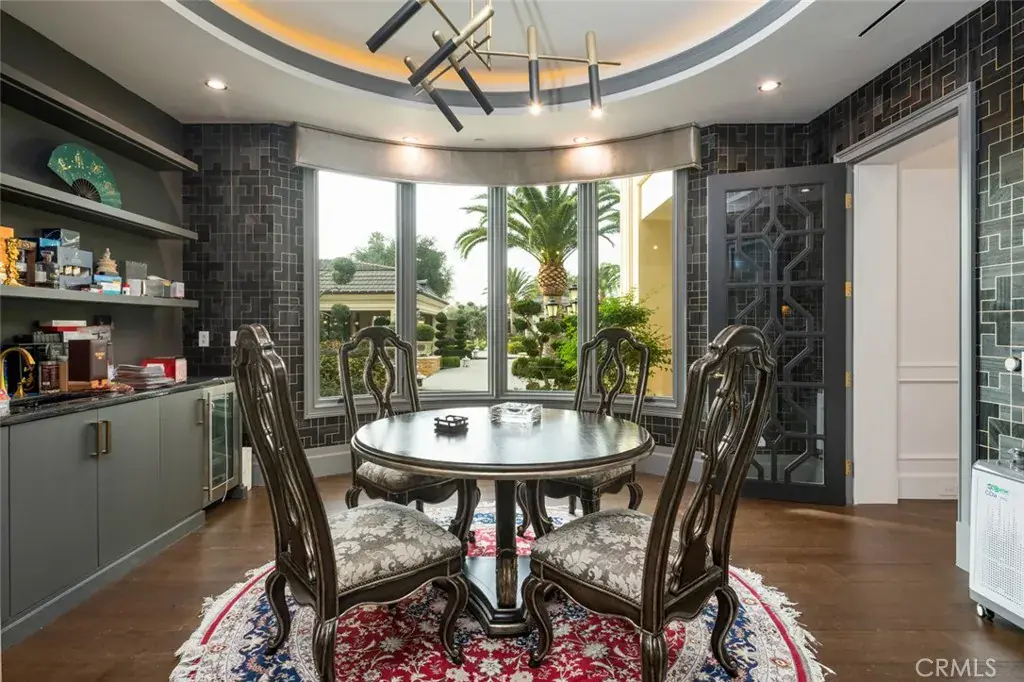 A true estate-style property sited on 2.5 acres, surrounded by an assemblage of accommodations to complement both the structural elements and the sublime natural setting. A Robert Tong concept and design, the compound affords a 15,500-square-foot main residence, refined by a curated selection of exceptional materials and amenities, along with a 2,500 square-foot guest house; a gallery garage with capacity for 20 vehicles; and a spacious cabana – all finished to reflect an elevated living experience. The estate was meticulously designed and arranged in accordance with the principles of Feng Shui, with these guidelines serving as the foundational framework for the overarching theme. The surrounding grounds present captivating moments for outdoor enjoyment, thoughtfully arranged around an expansive central gathering space and enhanced by a collection of mature trees, verdant foliage and lawns, and a 100ft-pool with ensconcing fountains. Additional notable appointments include a theater, games room, sauna, hibachi room, tennis courts, and meandering paths. Offering extremely rare lifestyle opportunities, the property is set within the established Bradbury Estates – revered for its privacy, location, and proximity to several of the finest schools in California. A property of this caliber, in this idyllic community has not been available in decades.