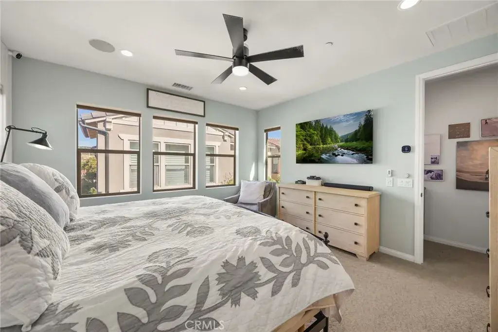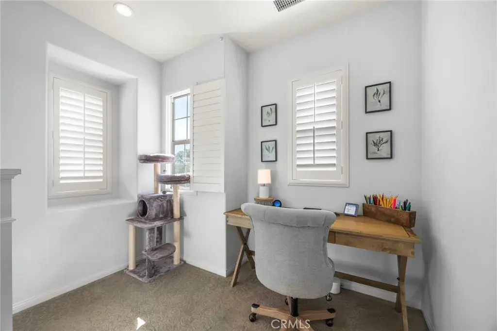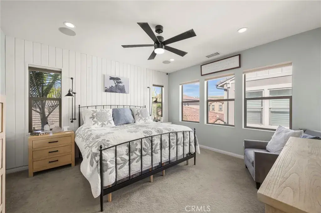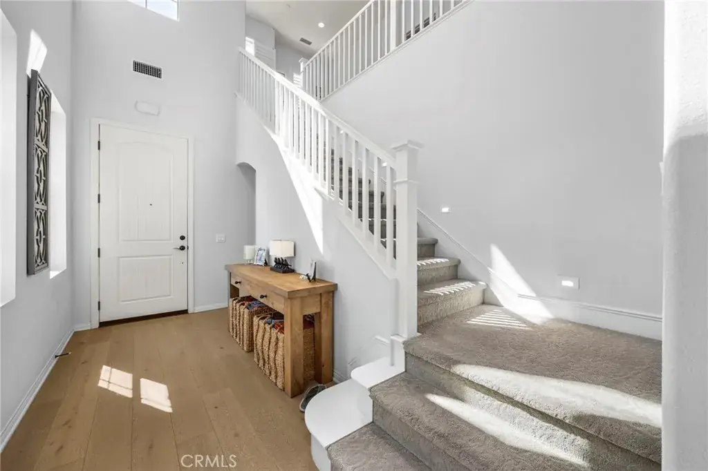 Welcome to your new home, the epitome of modern luxury and comfort. From the moment you enter the two-story foyer, you are treated to a home with exceptional natural light and amenities. The great room is the heart of the home, with a gourmet kitchen complete with expansive all-wood cabinetry, quartz countertops and a large island. Dual ovens, a pot filler and upgraded appliances facilitate entertaining. While in the open concept kitchen, enjoy views of the dining room and living room, with large stacking doors opening to the California room, bringing in the sights and sounds of a well-planned garden with solar landscaping, a speaker system, oversized bubbling pots and an outdoor fireplace. Upstairs, three bedrooms and an open office space await. The primary bedroom is a true retreat with motorized blackout shades and in-ceiling speakers. The piece de resistance, however, is the oversized walk-in shower with marble floors and an overhead rain shower. A finished garage with ceiling storage, a tankless water heater and electric vehicle charging provide additional space and convenience. Your new home also features a solar power system that is PAID OFF in full! This model has not been on the market in 18 months – having only come up for sale once in 2023 and 2024 – and this particular residence enjoys no shared walls and an entrance with no neighbors in front. The community offers vast opportunities for recreation, including a clubhouse, park, resort-style pool and spa, jogging and biking paths – and proximity to Whole Foods and other upscale restaurants and shops. Everything you need is within walking distance and within the sought after Brea Olinda School District.