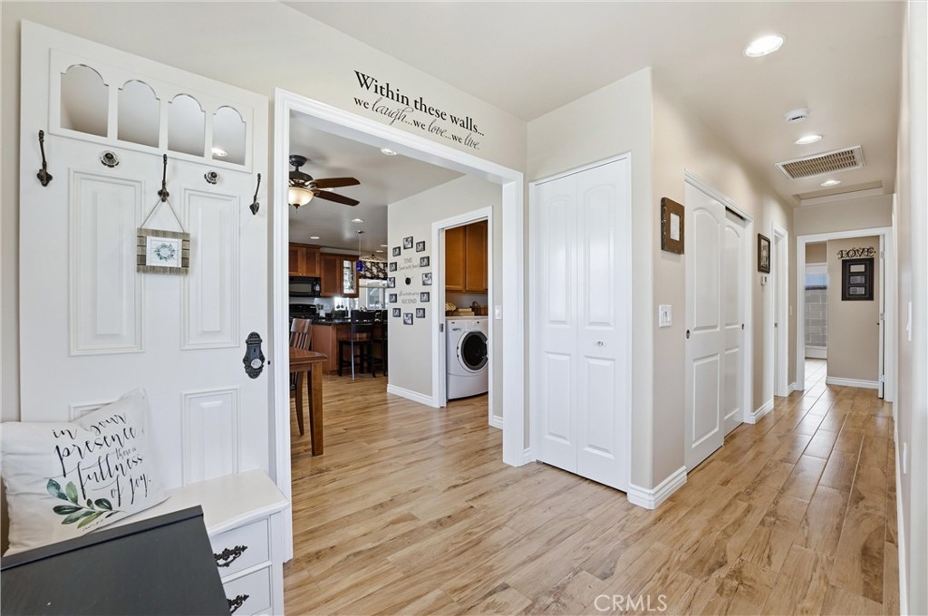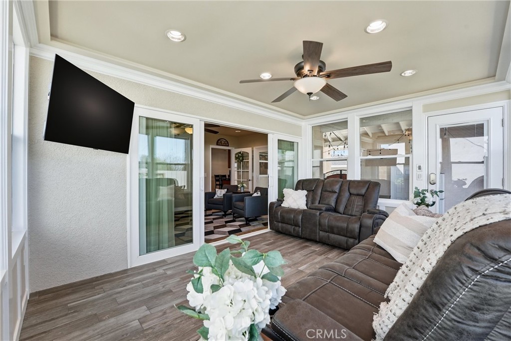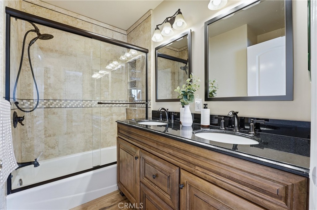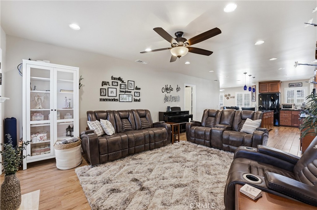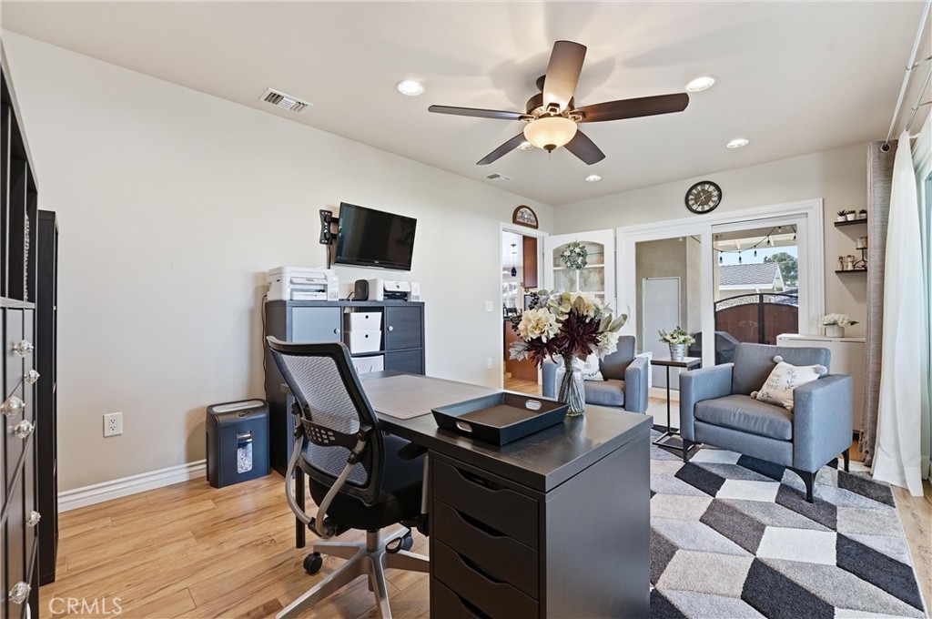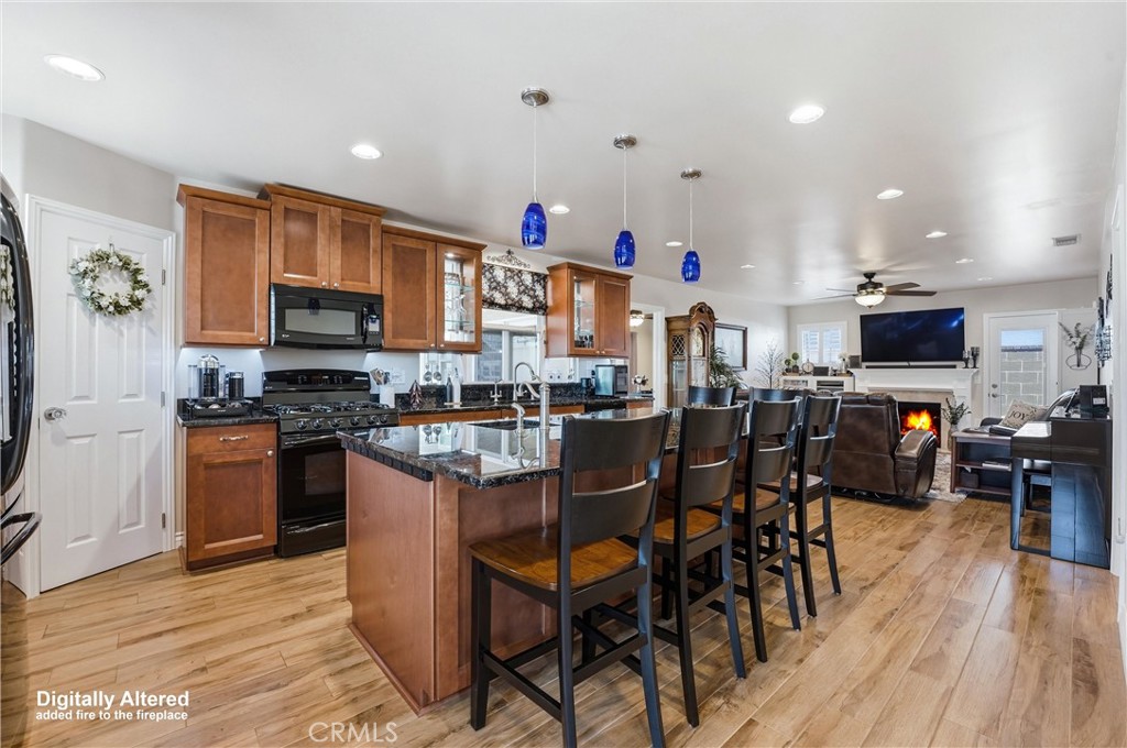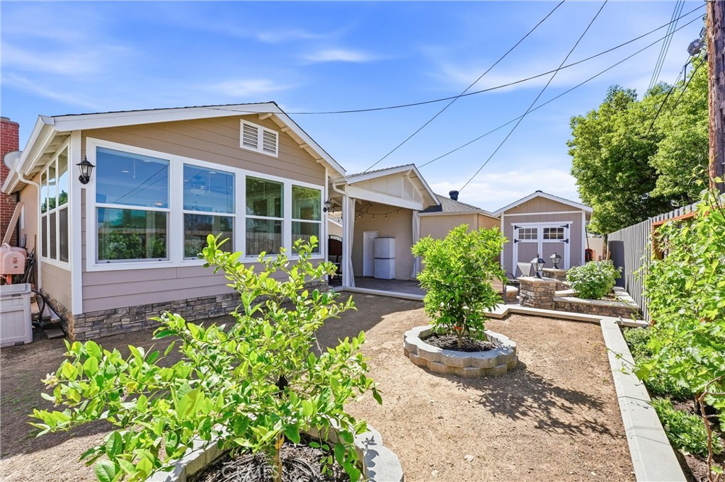 Completely rebuilt in 2014, this custom single-story home in Brea combines quality construction, upgrades, and everyday comfort. A welcoming covered front patio and classic brick entry set the tone for what’s inside. The entry opens to a charming foyer before leading into the main living areas. The home features a bright, well-designed layout with plank-style porcelain tile flooring throughout, offering the look of hardwood with added durability. The family room is spacious, anchored by a custom stone fireplace and mantel, and enhanced with recessed lighting and an overhead ceiling fan. The kitchen sits open to the family room, making it ideal for everyday living and entertaining. It is beautifully finished with granite countertops, maple cabinetry, under-cabinet lighting, a walk-in pantry with adjustable shelving, and a large center island with its own prep sink. Additional highlights include pull-out shelving, built-in trash storage, and soft-close cabinets and drawers. This home offers 3 bedrooms plus a den/office and 2.5 baths. Just off the family room, the fourth room serves perfectly as a private office or den, with a sliding door that opens to a spacious enclosed patio/sunroom (sunroom not included in square footage). All three bedrooms are bright and well-appointed, each with recessed lighting, ceiling fans, and mirrored wardrobe doors. The bathrooms feature granite countertops, dual sinks in both full baths, upgraded tubs and showers, and all-in-one fan/heater/light/night light units for comfort and convenience. Beyond the finishes, major system upgrades include electrical, plumbing, insulation, dual-pane windows, and roofing with radiant barrier. Additional features include a whole house hot water recirculation system, water softener, reverse osmosis system, smart locks, a Wi-Fi-enabled thermostat, and pre-wiring for high-speed internet and media connectivity. The backyard is designed for entertaining and low-maintenance living, featuring fruit trees (orange, lemon, and 3 types of grapes) with a Wi-Fi smart irrigation system, along with an expansive covered patio with built-in cabinetry and sink, custom hardscape with fire pit, landscape lighting, and a large custom storage shed. Digitally enhanced photos show the potential for a grass installation. Located less than a mile from Brea Mall and close to shopping, dining, top-rated schools, and Cal State Fullerton, this home combines comfort, convenience, and quality in one exceptional property.