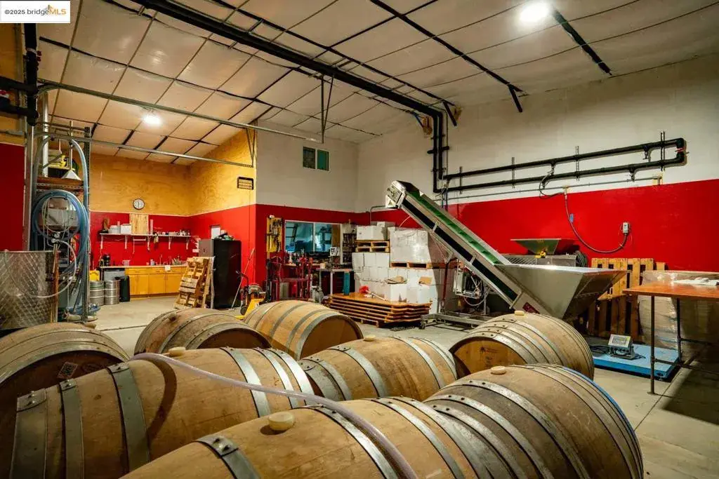 Rare opportunity to own a turnkey organic farm and vineyard in Brentwood’s famous U-Pick region, minutes from San Francisco and San Jose. The property features two modern homes (main residence is 2,565 sqft plus second home/ADU approx 1,000 sqft), a solar-powered 5,000 sq ft steel winery/shop, fruit stand with walk-in cooler, greenhouse, and electric irrigation pump with district water access. All 34 acres are CCOF-certified organic, including approximately 20 acres of orchards and mixed vegetables (peaches, nectarines, cherries, apricots, citrus, figs, and more) and a 4-acre producing vineyard. Fully fenced and ideally suited for use as a working farm, vineyard, or private agricultural estate with exceptional infrastructure and income potential.