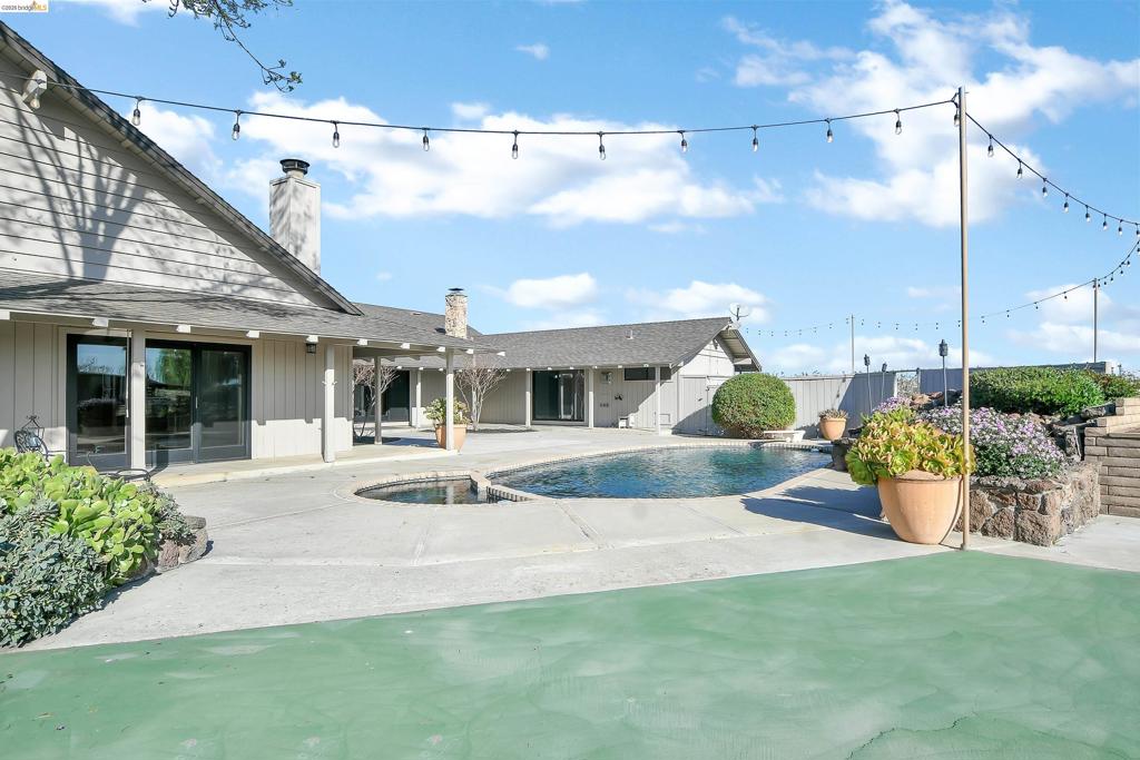 This expansive 5/acre estate features a 4,623 sf home with gorgeous views of Mt. Diablo, ideally located close to downtown dining and shopping. The residence includes a meticulously updated kitchen, family room, dining room, bedrooms, and baths. Additionally, the home offers a game room with a wet bar and a full entertainment area featuring a full oak bar. For flexible living arrangements, there is an upstairs in-law apartment with its own kitchen, full bath, and sitting area, as well as a side room with an outside entrance that can serve as a bedroom or office. The exterior of the property is equally impressive, featuring: – A pool and spa – A tennis court – A horse barn, paddocks, and a riding area – A 5-acre cherry orchard and numerous fruit trees (citrus, apricots, peach, pear, apple, and pomegranates) – 70 owned solar panels powering the entire property