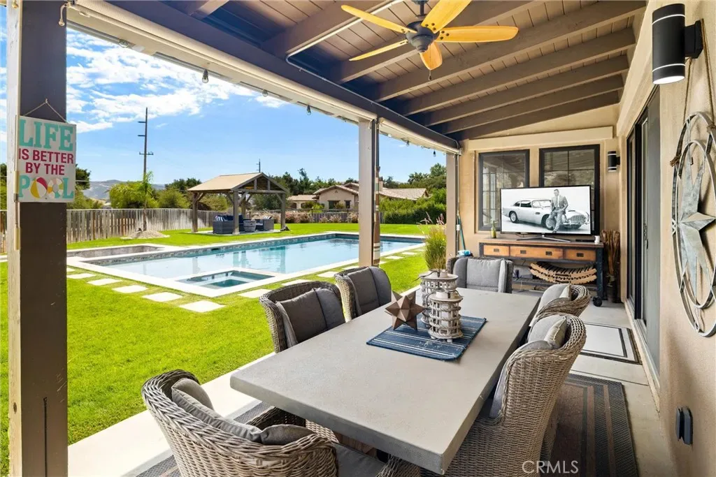 The backyard is an entertainer’s dream with a resort-style pool and spa (added 2019), covered patio, and poolside gazebo. The expansive one-acre lot offers room to expand—whether adding an ADU for guests or rental income, or customizing the outdoor space to your lifestyle.