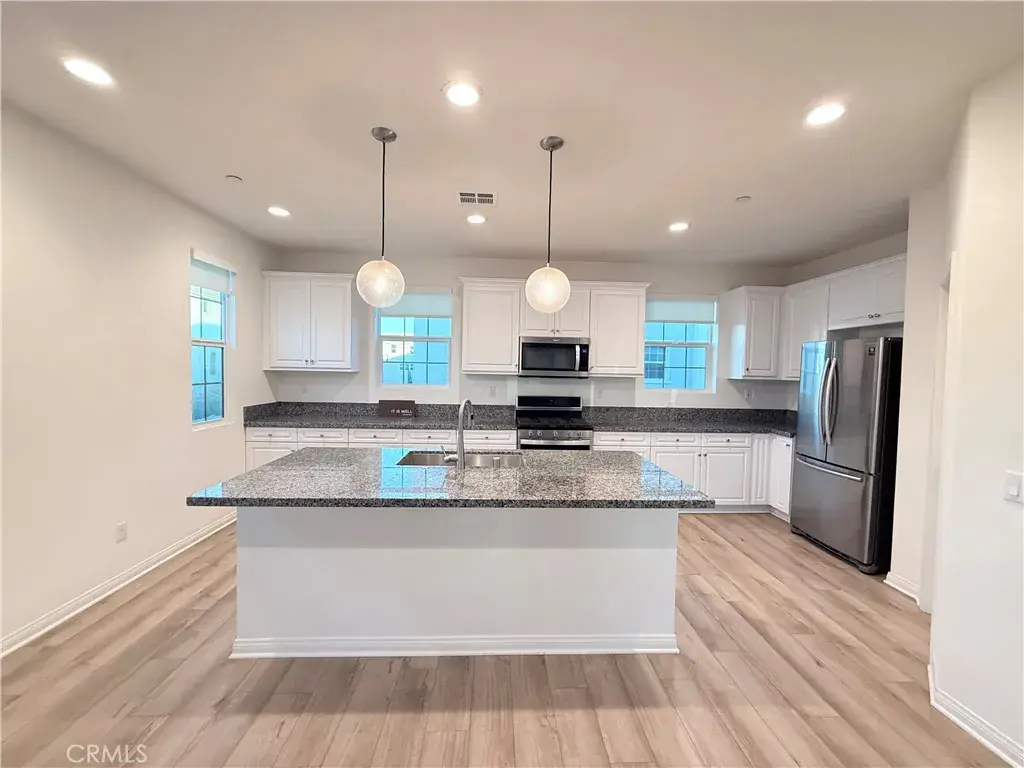 Newly built 4-bedroom END-UNIT townhome located in the gated Magnolia Square Community. This thoughtfully designed floor plan features a private main-level bedroom with an ensuite bath, ideal for guests or multi-generational living. The second floor offers an inviting open-concept layout with a gourmet kitchen, a spacious kitchen island, a walk-in pantry, and a seamless flow into the dining and living areas, which extend to a private balcony—perfect for relaxing or entertaining. The upper level features a primary suite with a large walk-in closet, two additional bedrooms, and an upstairs laundry room. Further highlights of this home include an attached two-car garage with direct access, ample guest parking, and community amenities such as BBQ areas, outdoor picnic spaces, and a playground. Conveniently located near the 5 and 91 freeways and The Source OC, this home is also within walking distance to Buena Park High School, offering the perfect blend of comfort, convenience, and contemporary elegance.