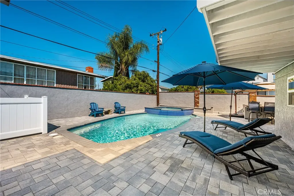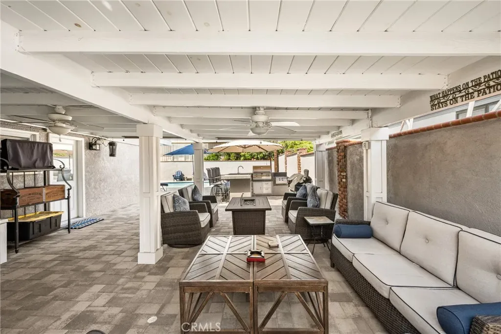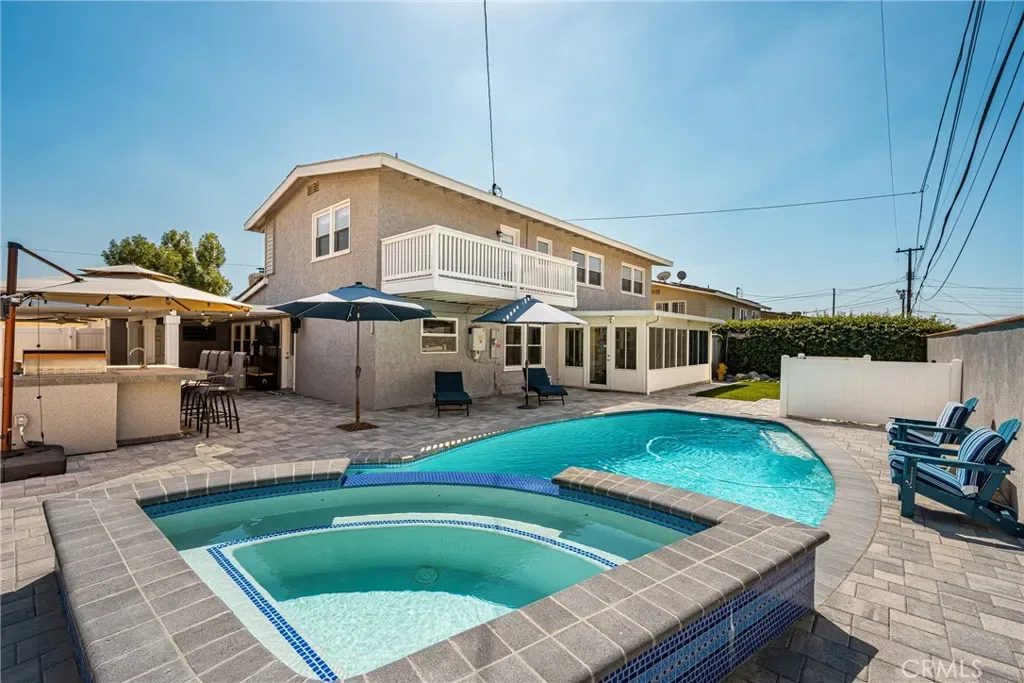 The outdoor space is truly exceptional. Recently remodeled front and backyard areas showcase a stunning pool and spa renovation completed just two years ago, featuring elegant brick pavers and a private covered patio. The backyard is an entertainer’s dream with a fully equipped barbecue island including a built-in grill, side burner, sink, and refrigerator.