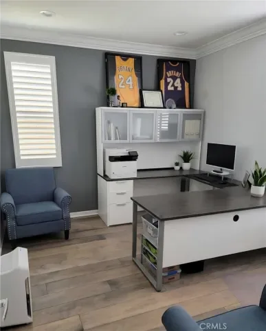 This home offers a bright and open floor plan with many upgrades, including wood flooring, wood shutters, and quality finishes throughout. The upgraded kitchen features premium materials and high-end appliances, including a refrigerator and water softener.
