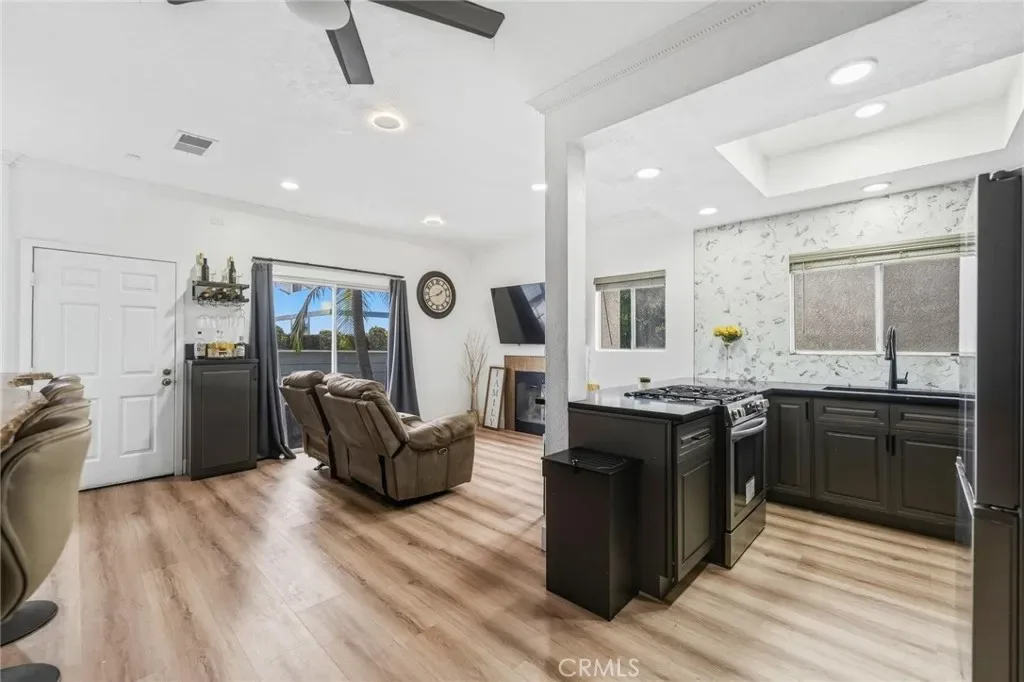 A fully remodeled kitchen anchors this three-bedroom multi-level home at 7361 8th Street, Unit 4, in the city of Buena Park, where new cabinetry, countertops, plumbing, and recessed lighting work together to create a cohesive and finished space. New vinyl flooring runs throughout the first floor, while updated flooring on the stairs and in the bedrooms carries the same sense of continuity upward through each level. Fresh baseboards and new door hardware bring a level of polish to the details that often get overlooked in a renovation. The living area includes a tiled fireplace, and fresh interior paint throughout ties the custom accent features and modern finishes together into a consistent look. The lower bathroom has been renovated as well, rounding out the upgrades across the home’s multiple levels. At 1,201 square feet, the layout makes practical use of the space available, and with the work already done, this unit is ready for immediate occupancy.Conveniently located near schools, shopping centers, major freeways, and just minutes from Knott’s Berry Farm.