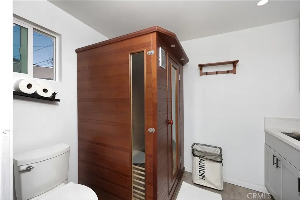A standout feature is the detached garage with ADU potential (buyer to verify). The structure is already complemented by an outdoor bathroom, laundry room, sauna, abundant storage, including a separate outdoor shed. This flexible configuration creates multiple value-add possibilities—additional rental income, guest quarters, or creative workspace.