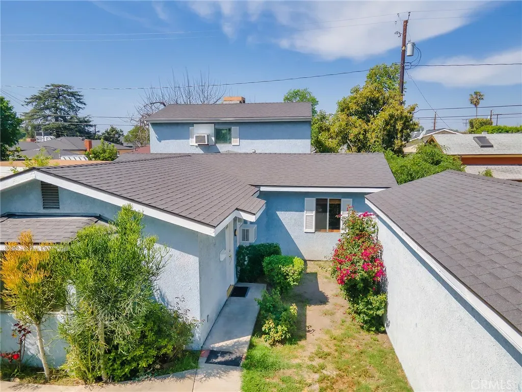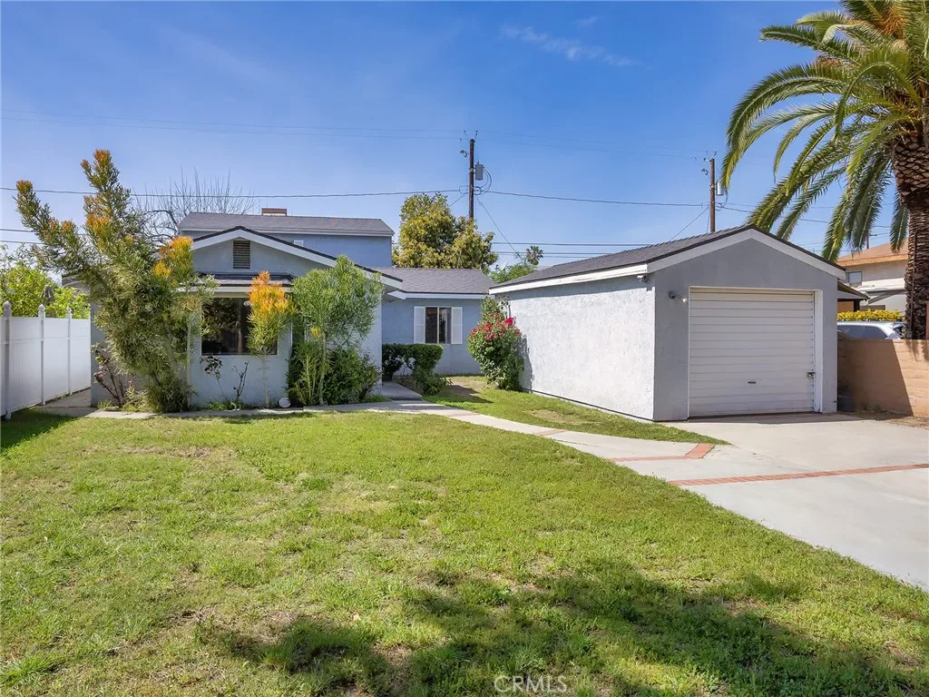 Welcome to your own mini gated estate, offering space, privacy, and endless potential on a generous 6,250 square foot lot. This charming two-story home features approximately 2,050 square feet of living space with 3 bedrooms and 2 bathrooms, thoughtfully laid out for comfort and flexibility. Step inside to a huge living room filled with natural light, complemented by new laminate flooring and fresh carpet throughout. The oversized formal dining room is perfect for gatherings and entertaining. The remodeled kitchen includes a convenient laundry area, making everyday living both functional and efficient. Central heating and air conditioning provide year-round comfort. Upstairs, enjoy a private primary suite retreat, offering separation and tranquility from the rest of the home. Outside, the expansive front yard creates a welcoming first impression and features a mature avocado tree, adding charm and character to the property. A detached 1-car garage is accompanied by a versatile guest room located behind it, ideal for visitors, a home office, or creative space. This home is just waiting for your finishing touches to truly make it your own. With its unique gated setting, generous lot size, and flexible layout, this property presents a rare opportunity to create something special. Tax assessor shows 2 bedrooms.