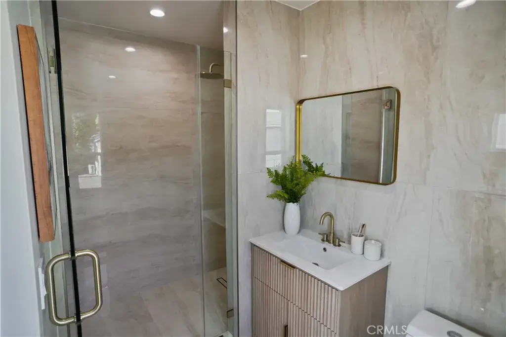 Main house * completely remodeled including updated roof, plumbing, electrical, HVAC, and windows, plus a sleek designer kitchen * 3 bed/ 2 ba * 1,088 sq ft * 2 car parking (possible room for 3rd) on driveway * all appliances included (refrigerator, washer, dryer, stove/range, dishwasher) * Central AC & Heat * fireplace * recessed lighting * waterproof floors * fenced back patio * can be rented including detached garage that has been converted into a studio for an extra $1,300 a month * there is an ADU in the back currently rented to a single tenant separate from the main home and studio