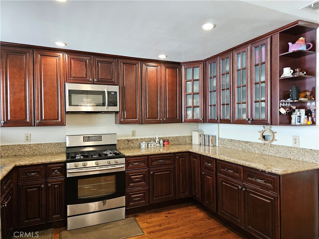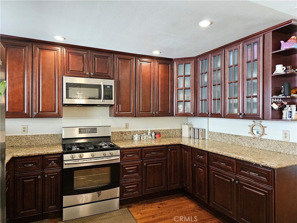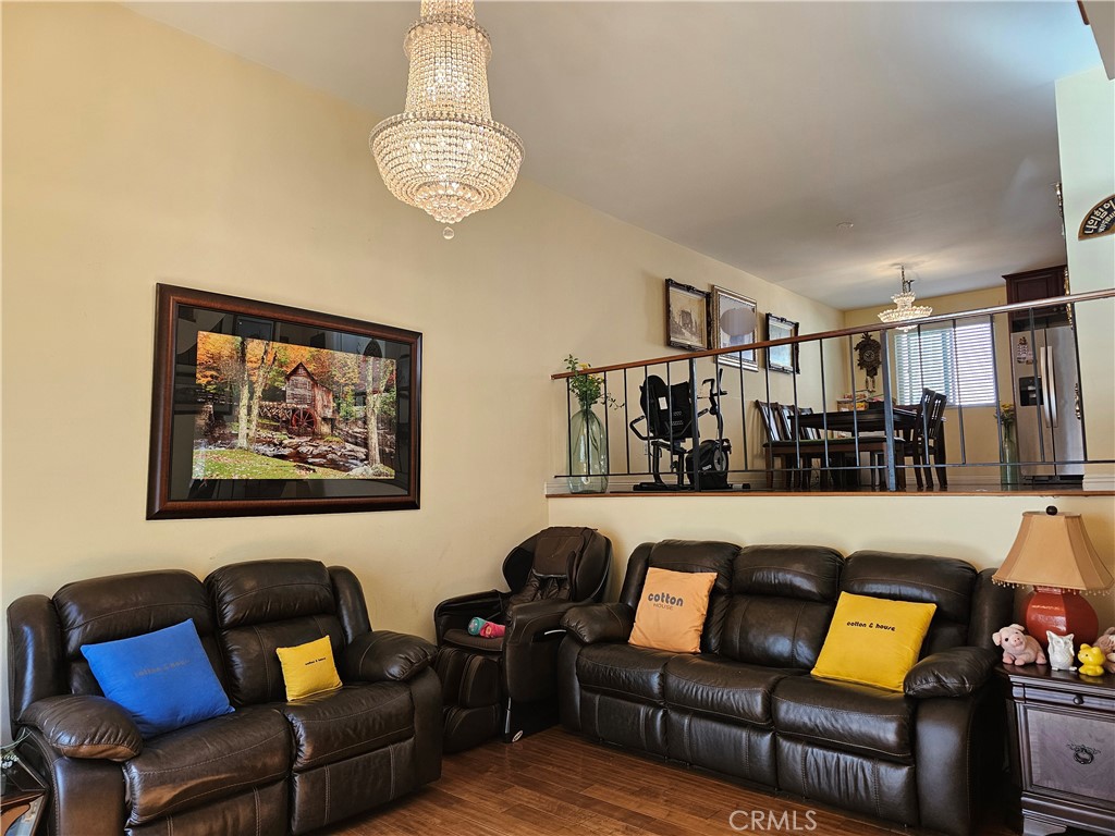 Welcome to 1711 Grismer Avenue #52, a bright and beautifully updated townhouse nestled in the prestigious Villa De Los Reyes community in Burbank. Set on a charming tree-lined street within a highly desirable school district, this tri-level residence offers an airy, light-filled layout with thoughtful upgrades throughout. Step inside to find rich wood flooring, soaring ceilings, and an elegant crystal chandelier that anchors the living space. The great room is enhanced with recessed lighting and stylish exposed railings, creating a modern yet inviting atmosphere.