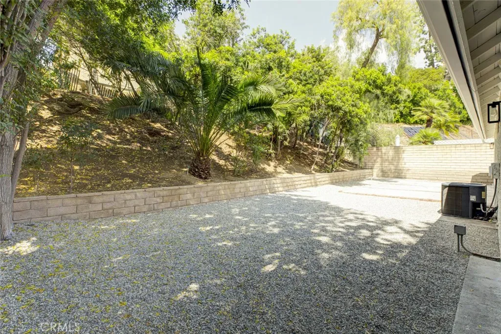 The backyard is designed for low-maintenance enjoyment, featuring a clean combination of concrete and decorative rock—ideal for gatherings and outdoor entertaining. The front yard has been newly landscaped with curated plants, flowers, and mature trees that enhance both curb appeal and privacy.