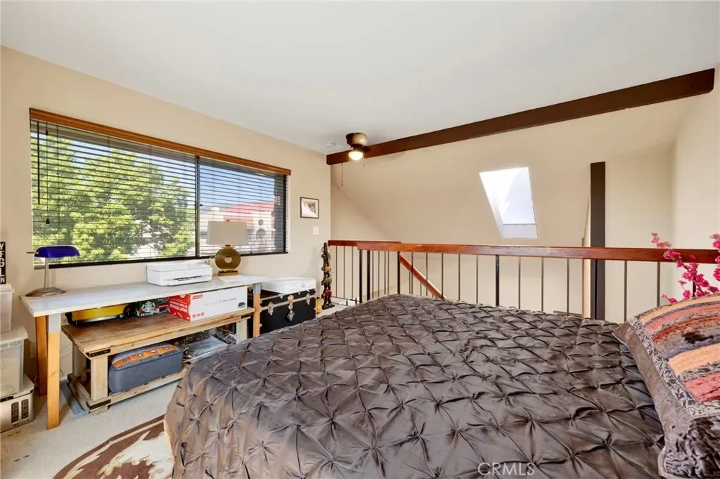 Above, a gorgeous loft overlooks the living area, adding architectural depth and serving as a striking flex space, perfect for a curated home office, studio, or elevated lounge.