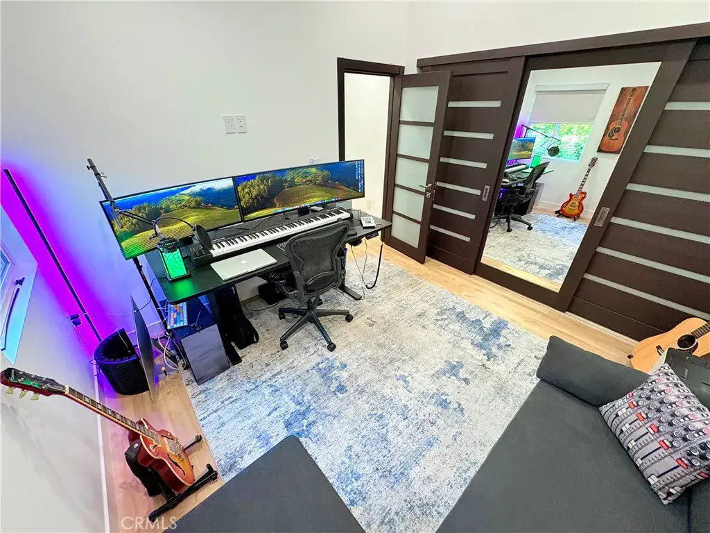 Experience sophisticated, turn-key living in this brand-new, two-bedroom, one-bathroom Accessory Dwelling Unit (ADU), perfectly situated on the desirable border of Burbank and Toluca Lake. Designed with luxury in mind, this home boasts soaring vaulted ceilings and a thoughtful open floor plan. The gourmet kitchen features top-of-the-line appliances and premium finishes, while the interior is complete with elegant wood and tile flooring, enhanced by custom blinds and spacious custom closets. Key features include a private, dedicated entrance, all appliances (including laundry), a luxurious dual-vanity bathroom, and the benefit of paid-off solar for reduced utility costs. Step outside to your exclusive, park-like sanctuary, complete with mature fruit trees, drought-tolerant landscaping, and custom outdoor lighting—perfect for evening enjoyment. This is a truly prime location, as you are within walking distance of local favorites like Porto’s, Starbucks, diverse dining options, and beautiful city parks, and just minutes from major studios, including Warner Bros., Disney, NBC, and Universal Studios, offering unparalleled convenience.