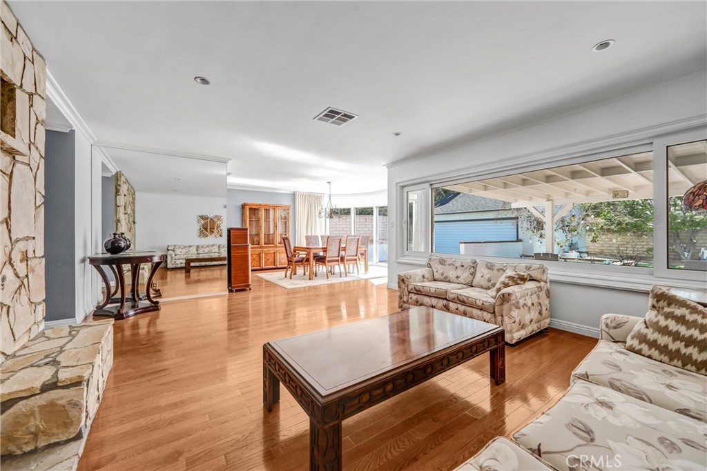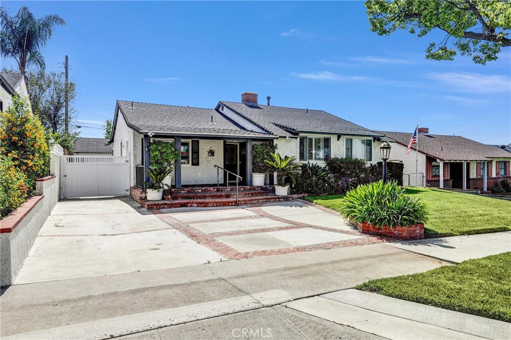 One Story three bedroom, two bath home on great neighborhood street. Living room has fireplace and opens to dining area. Dinning area has door to covered patio. Kitchen has stone counters with refrigerator, stove, dishwasher, microwave, and washer/dryer in closet. Primary bedroom has en suite bath with walk-in closet and sliding door out to covered patio. Two other bedrooms with hallway bathroom. Home has hardwood flooring or stone. Private backyard has covered patio and grass area. Gated driveway. Long driveway for parking. Storage shed in backyard. Gardener and Pest Control included. Home can be furnished or unfurnished.