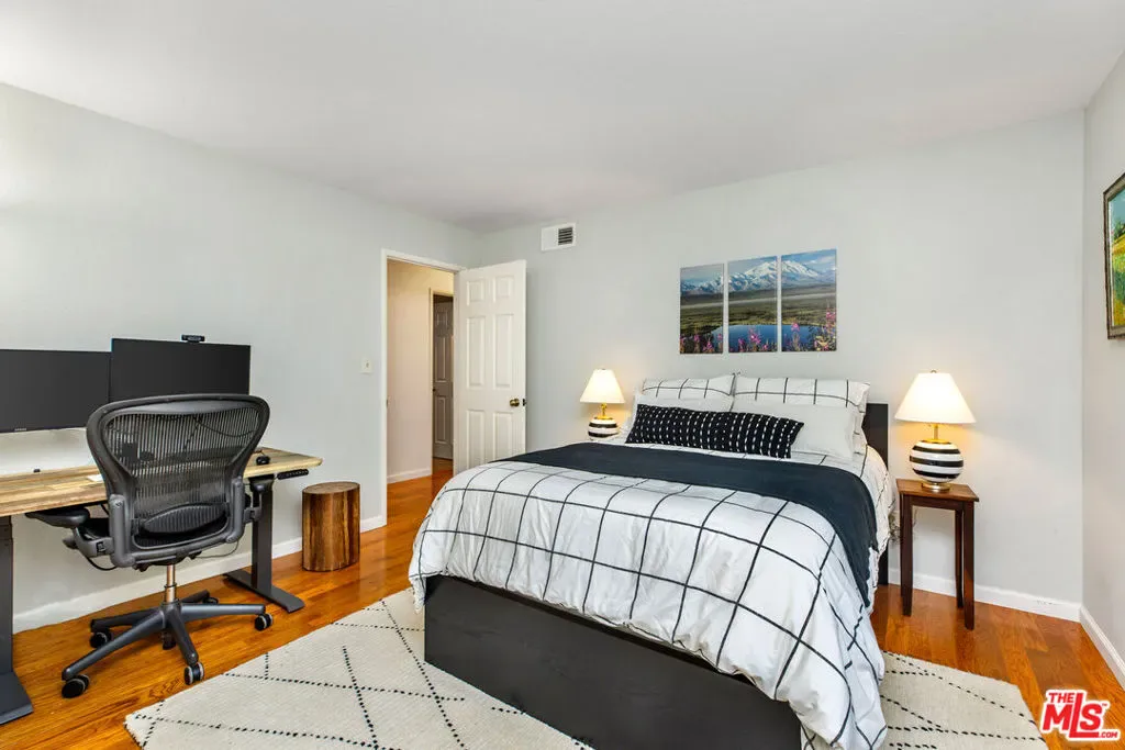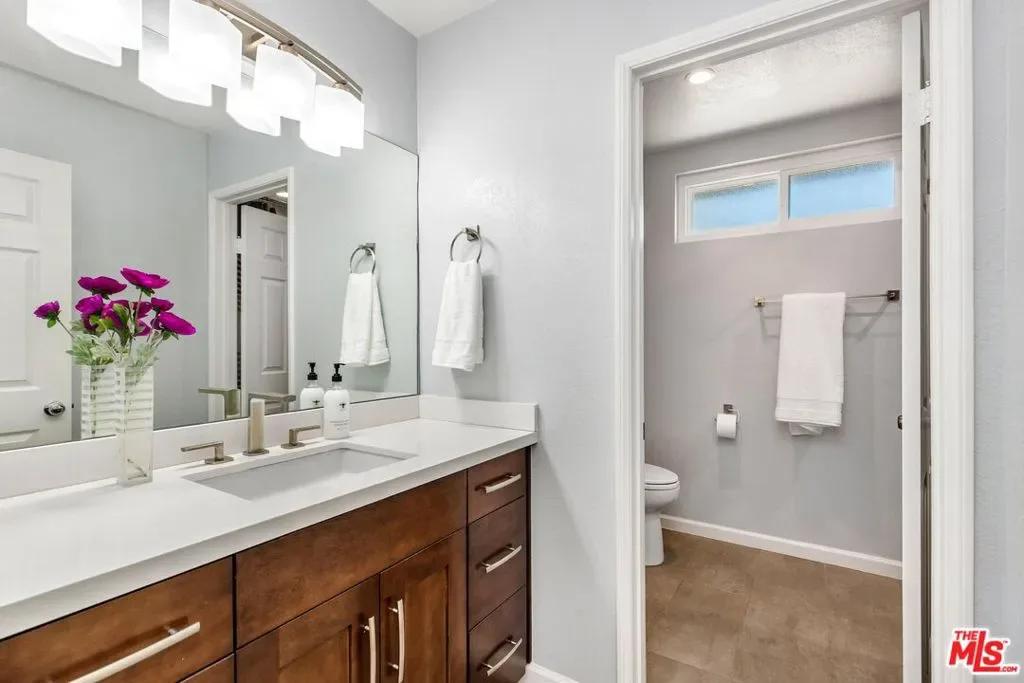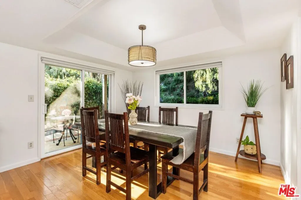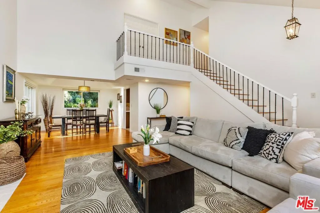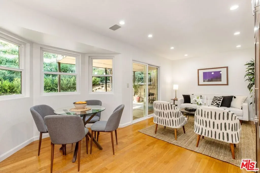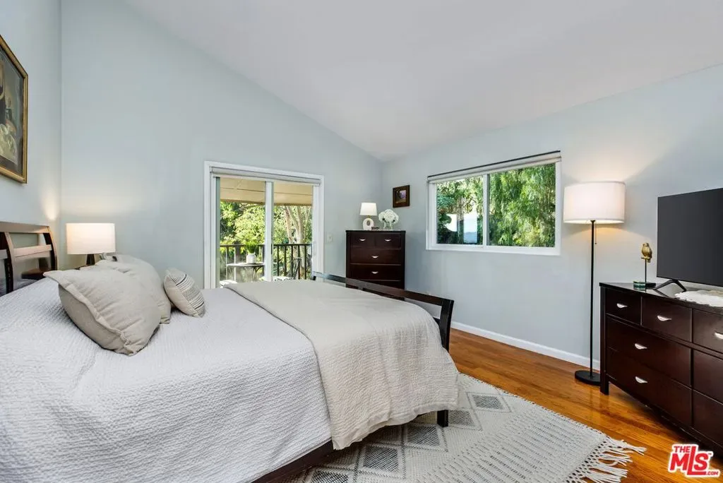 Set on a peaceful cul-de-sac in the hills of Burbank, this recently remodeled 4 BD/3 BA home showcases an expansive entertainer’s backyard, a thoughtfully designed floor plan, and elegant finishes throughout. Beyond the mature front landscaping, an inviting living room welcomes you with vaulted ceilings, a charming brick fireplace with a wood mantel, and rich wood flooring underfoot. The space flows seamlessly into a formal dining room highlighted by a tray ceiling and sliding glass doors that open to a side patio, perfect for effortless indoor-outdoor living. Just beyond, the bright kitchen offers abundant cabinetry, sparkling countertops, stainless steel appliances, and bar seating. Ideal for both quiet mornings and lively gatherings, it connects to an additional living area with a breakfast nook and sliding glass doors leading to a covered patio. A main-level bedroom, well-suited for an office or guest suite, and a sleek bathroom with a step-in shower complete the first floor. Upstairs, three bedrooms await, including a stunning primary suite featuring lofted ceilings, a walk-in closet with built-ins, and a private balcony with treetop and city views. The ensuite bath includes a dual vanity, generous storage, and a step-in shower with a bench. Two additional bedrooms offer ample closet space and share an updated full bath with a shower/tub combination. Outside, the private backyard feels like a retreat, with a secluded hillside backdrop, expansive lawn, multiple covered patios, and numerous areas for relaxing or entertaining. Additional highlights include a dedicated laundry room with side-by-side washer and dryer and a two-car garage with direct access to the kitchen. Located near award-winning schools, the Burbank Empire Center, and the shops and dining of Downtown Burbank, this meticulously maintained home offers comfort, style, and convenience in one exceptional setting.