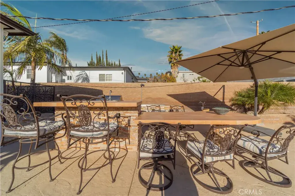 Step outside to a private backyard retreat with a sparkling pool and waterfall, jacuzzi, and built-in BBQ perfect for entertaining or relaxing. A sliding gate offers alley access, and new flat stucco gives the exterior a clean, contemporary look. The garage includes ample cabinetry for organized storage.