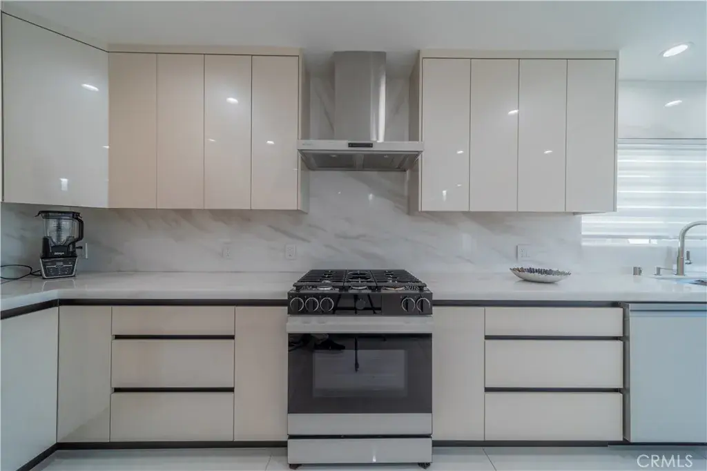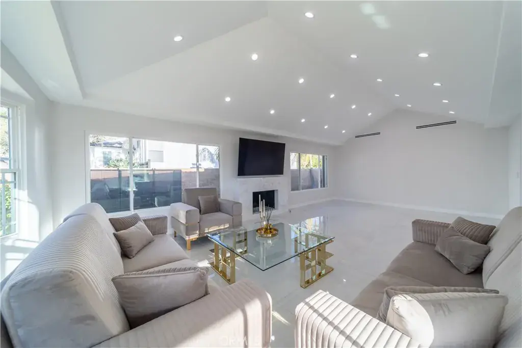 Located above Kenneth Rd in one of Burbank’s most desirable areas, this beautifully remodeled 4-bedroom, 3.5-bath home blends modern luxury with everyday comfort. Bright natural light fills the open layout, highlighting sleek onyx-look porcelain tile, laminate flooring, and a custom kitchen with natural marble countertops, elegant appliances, and a smart range. The spacious living room features an original one piece marble fireplace, creating a warm centerpiece for the home. Two bedrooms are conveniently located downstairs, and security cameras throughout provide added peace of mind.