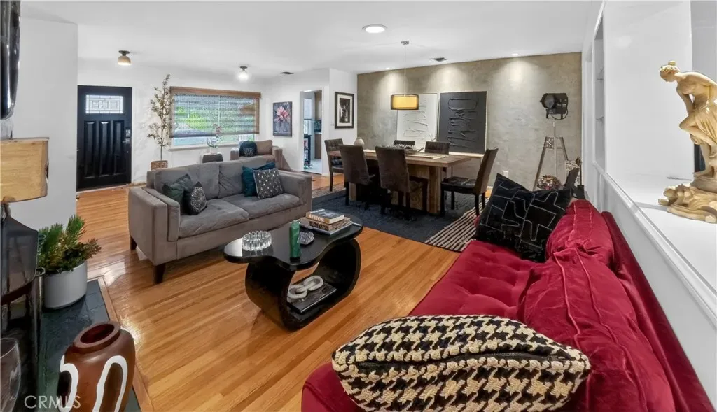 This well-maintained home features 4 spacious bedrooms and 3 full bathrooms, thoughtfully designed for comfort and flow. The primary suite boasts elevated ceilings and sliding doors that open directly to the backyard, blending indoor and outdoor living. Rich hardwood flooring runs throughout the main living areas and bedrooms, while the living room opens seamlessly to the outdoors through expansive sliding glass doors, filling the space with natural light.