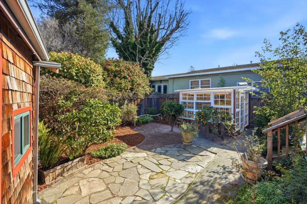 Built in 1905 as a hunting lodge on land once owned by William Corbitt, this thoughtfully remodeled historic home offers a comfortable blend of original character and modern updates. The light-filled living room features a classic fireplace, creating a warm and welcoming setting. Newly refinished oak floors, fresh interior paint, and large picture windows highlight the homes architectural charm, while the updated kitchen provides both style and functionality for everyday living. The private top-floor primary suite offers a quiet retreat with high ceilings, large windows, and a spacious closet. The adjoining bathroom features attractive tile finishes, dual sinks, and a large shower. Recent improvements include 16 owned solar panels, an EV charger, dual-pane windows, tankless water heater and a new roof installed in 2025. The garden offers a peaceful outdoor space with mature landscaping, a greenhouse, sprinkler system, and low-maintenance design. A spacious deck provides the perfect setting for entertaining or simply relaxing and enjoying the quiet outdoor surroundings. Tucked behind the garage, a detached guest room or office creates a quiet, flexible space away from the main home, with tile flooring, natural light, and garden views.