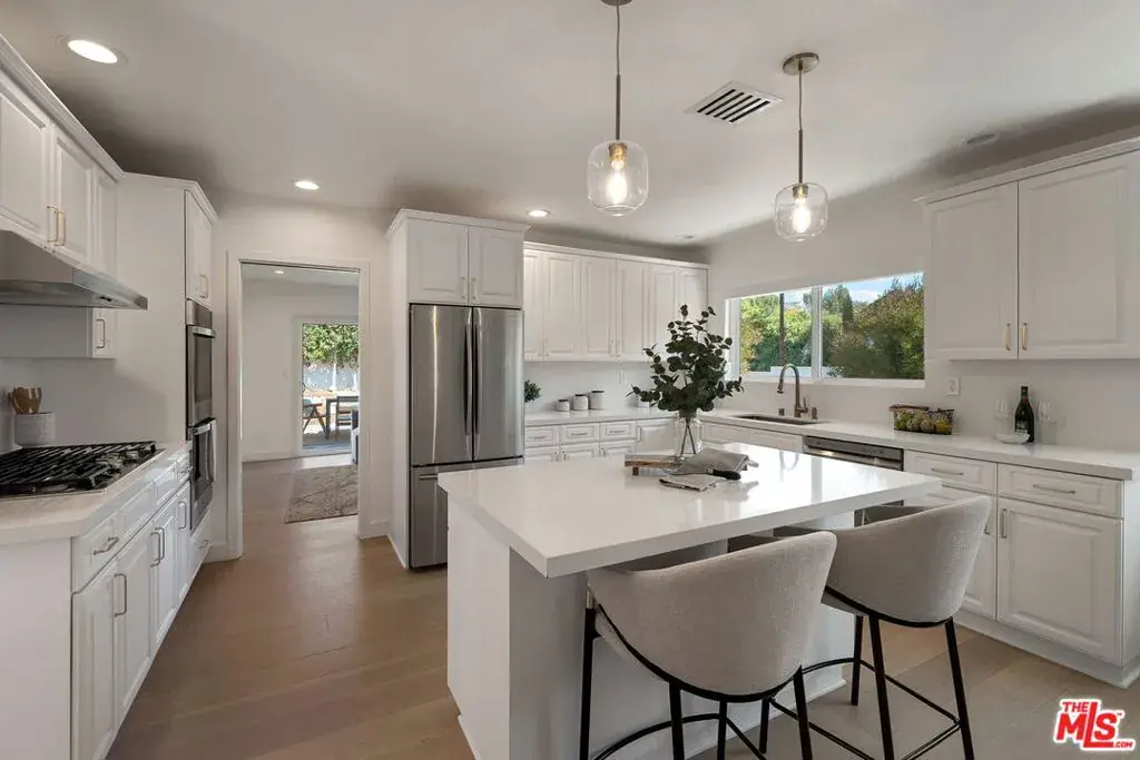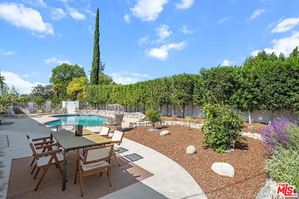 Exquisitely remodeled single-story home nestled in one of Calabasas’s most desirable neighborhoods. This stunning residence blends modern comfort with timeless style, featuring an open floor plan that’s perfect for both everyday living and entertaining. Inside you will discover a bright interior filled with natural light, complemented by hardwood floors and recessed lighting throughout. The spacious living areas flow seamlessly into the updated kitchen and dining room, creating a warm and inviting atmosphere. Outside, enjoy the ultimate California lifestyle with a sparkling pool and a private backyard ideal for relaxing or hosting family and friends. Located in a quiet, friendly neighborhood close to top-rated schools, parks, and the best of Calabasas shopping and dining, this home truly has it all.