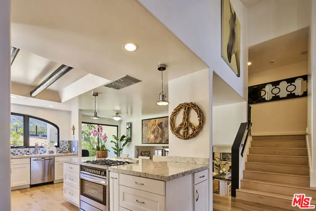 Set behind private gates in the prestigious Cold Canyon neighborhood, this Mediterranean-style estate offers rare privacy and tranquility on nearly two flat, usable acres. Just minutes from Malibu’s beaches, Calabasas Commons, Saddle Peak Lodge, and top schools, it blends seclusion with convenience. Newly renovated, the home features natural light, light wood floors, soaring ceilings, and white stone surfaces, creating an elegant, welcoming atmosphere. The open floor plan is perfect for both relaxed living and larger-scale entertaining. The gourmet kitchen boasts a big center island, premium appliances, and a seamless flow to the dining area. The formal living room’s vaulted ceilings and oversized windows frame stunning views, while the expansive family room, with wraparound bar and covered patio, is ideal for entertaining. Upstairs, the primary suite offers mountain and treetop views, a fireplace, and private terrace. The spa-inspired bath includes a soaking tub and dual rain-head shower. Three additional bedrooms and a versatile bonus room offer endless possibilities for guests, office, studio or media room. The nearly two-acre grounds feature mature trees, walking paths, and drought-tolerant landscaping with succulents and fruit trees. There’s plenty of room to add a pool, ADU, or custom outdoor amenities. A truly meaningful purchase, all proceeds from the sale benefit a 501(c)(3) animal welfare organization. Private. Expansive. Purpose-driven. Opportunities like this rarely come to Cold Canyon.