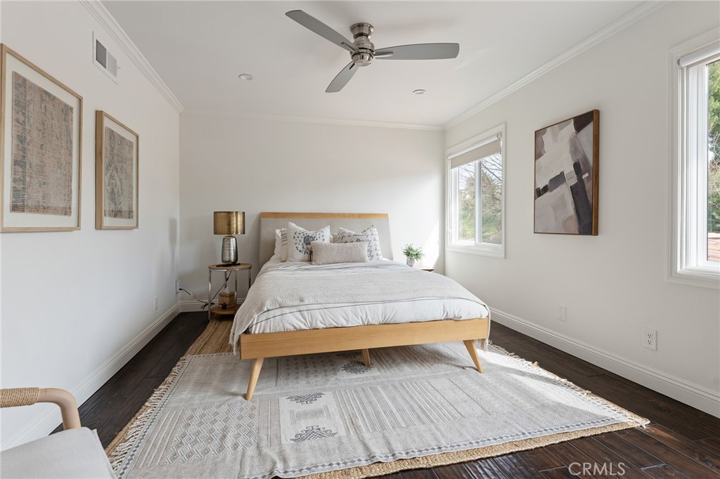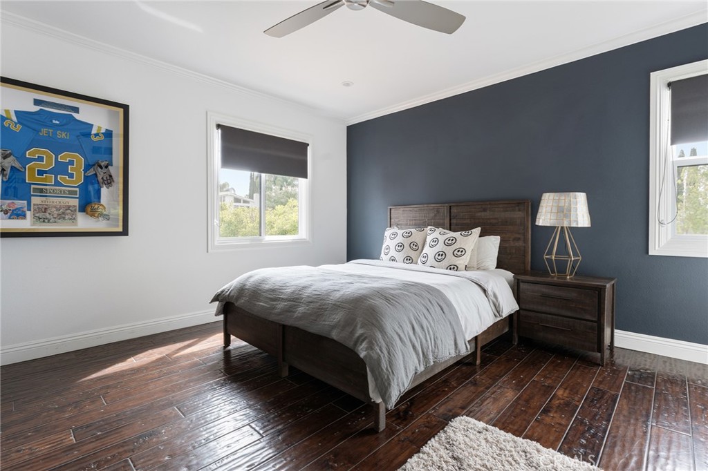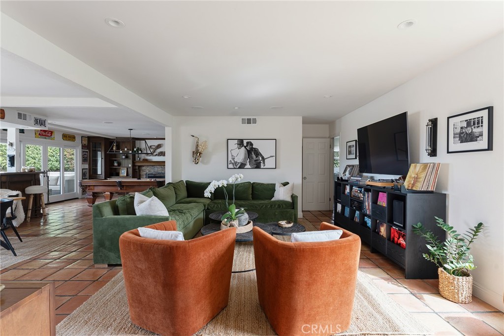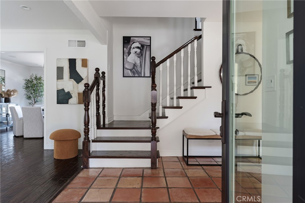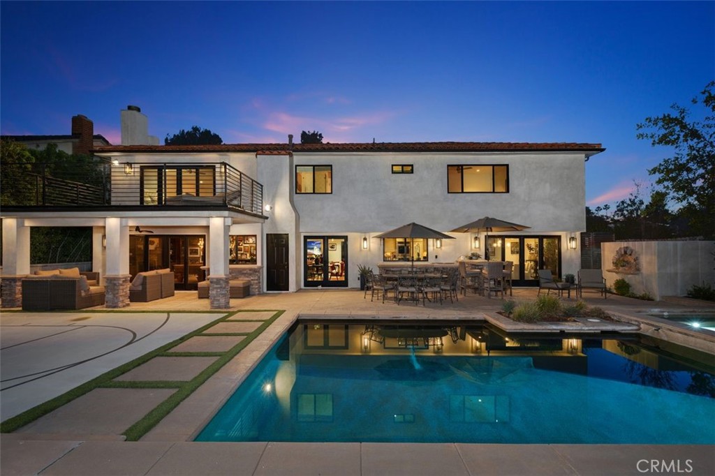 A rare offering in prime Mulwood with VIEWS, this warm Spanish style property is designed for effortless indoor-outdoor living and unforgettable entertaining. Spanning nearly 3,700 square feet, this home features 5 bedrooms and 5.5 bathrooms, including a desirable downstairs bedroom. The size, views and bedroom count are a unique find in Mulwood! A charming front courtyard welcomes you into a light-filled interior with several spots to gather, including a salon with a pool table and bar, a light and bright den and a more formal sitting area that flows into the courtyard. Newer glass doors throughout allow for a seamless flow to the outdoors. The layout is ideal for both everyday comfort and elevated entertaining. Upstairs, the spacious primary suite offers a private retreat with a cozy fireplace, walk-in closet, balcony, and sweeping views. Two of the three additional upstairs bedrooms include en-suite baths, providing both privacy and flexibility. The resort-style backyard is complete with a pool, oversized spa, covered patio, deck, half sport court, and a covered dog run – perfectly blending function and lifestyle. A finished 3 car garage currently serves as a gym, adding even more versatility. The downstairs bedroom has its own full bathroom and is ideal for multi generational living or an office. With its rare size, unique Spanish character, and exceptional indoor-outdoor experience, this is a standout offering in one of Calabasas’ most sought-after neighborhoods. Truly a special home ready for you to make lifelong memories! In close proximity to all three assigned public schools and Gelson’s shopping center, this property really has it all!
