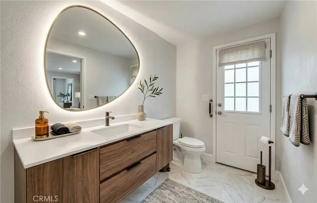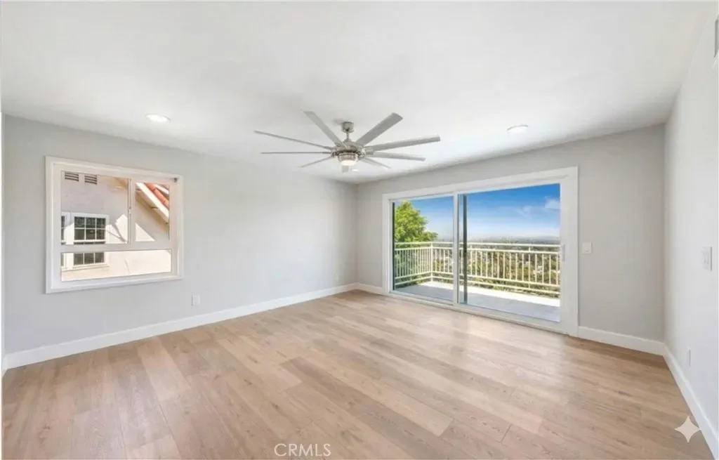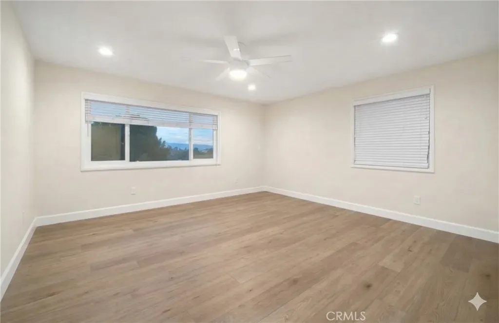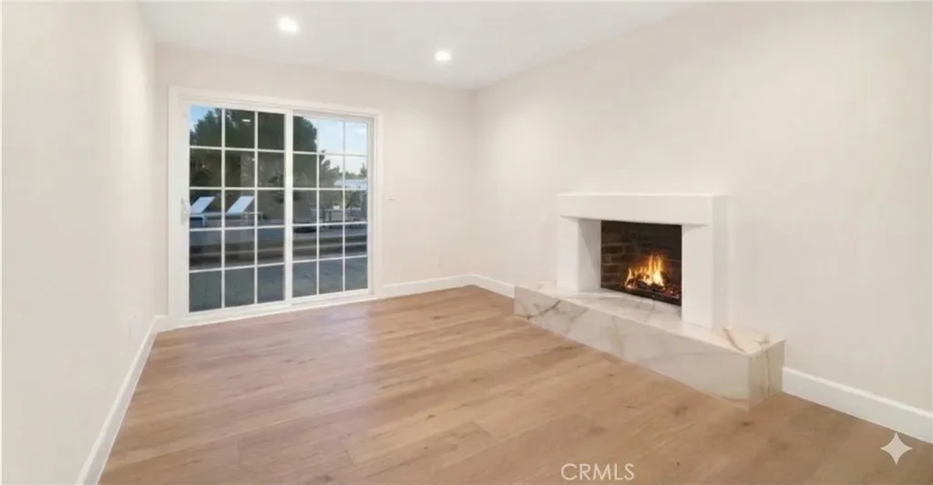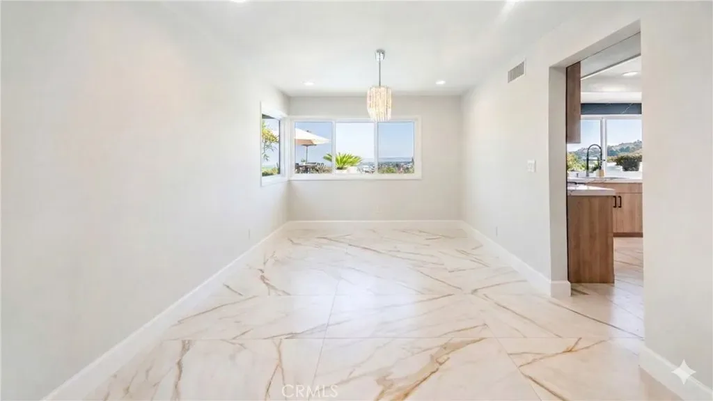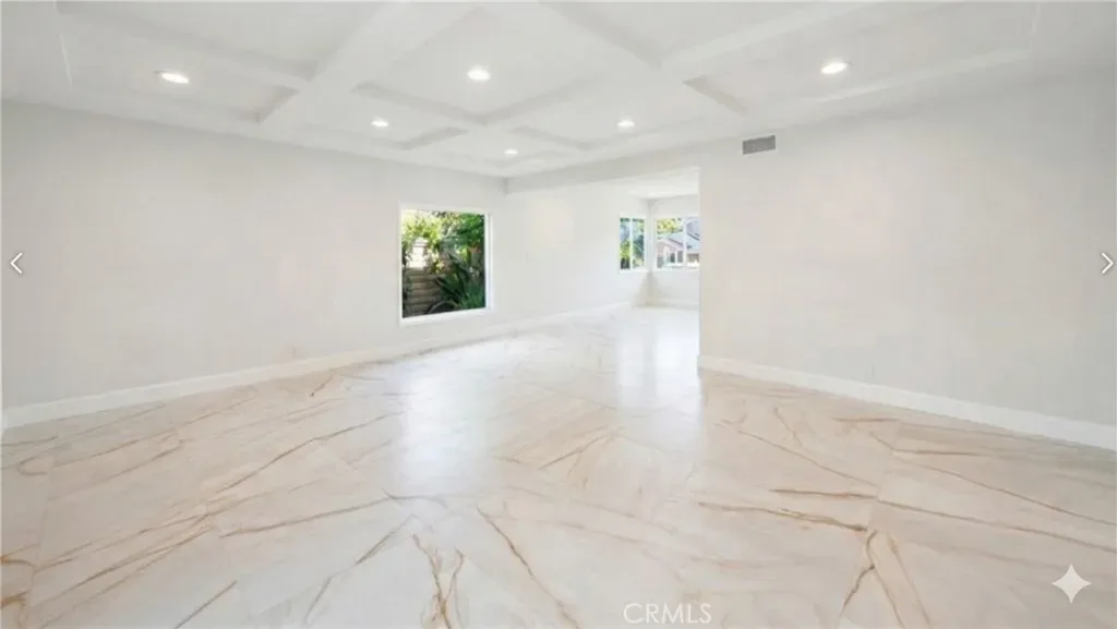 The home features five spacious bedrooms and three beautifully remodeled bathrooms, enhanced by abundant natural light, recessed lighting, ample storage, and refined high-end finishes throughout. Wide-plank wood flooring paired with elegant marble surfaces flows seamlessly through the home, adding warmth and sophistication to its clean, modern aesthetic.