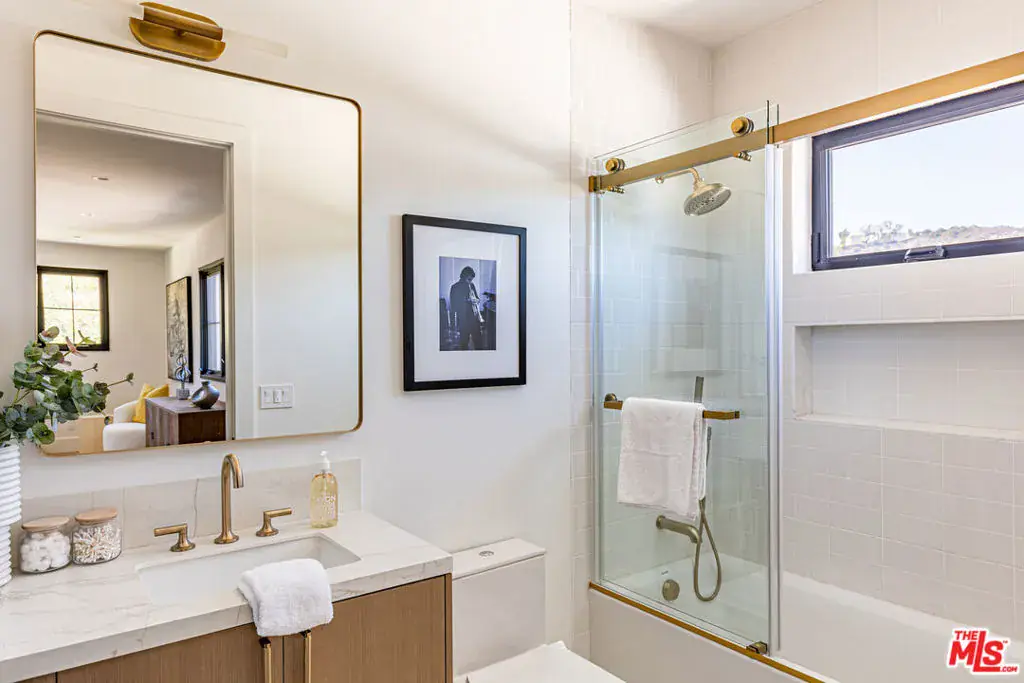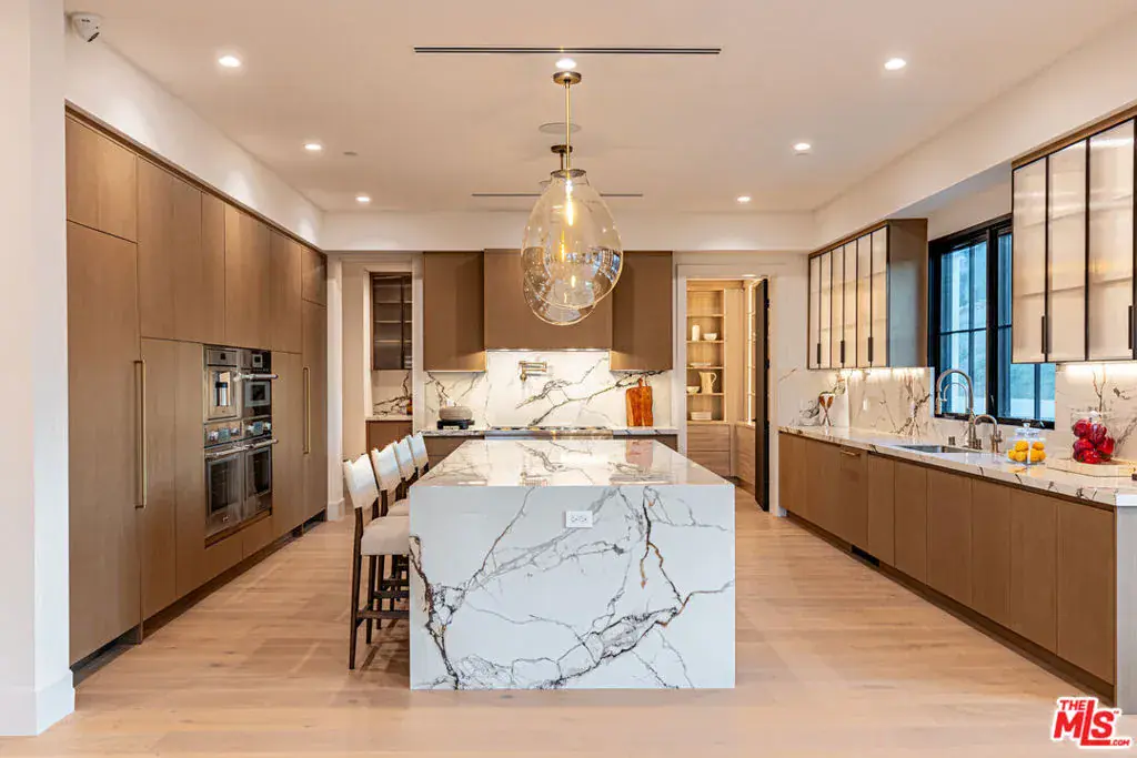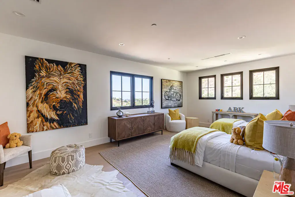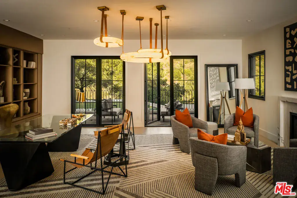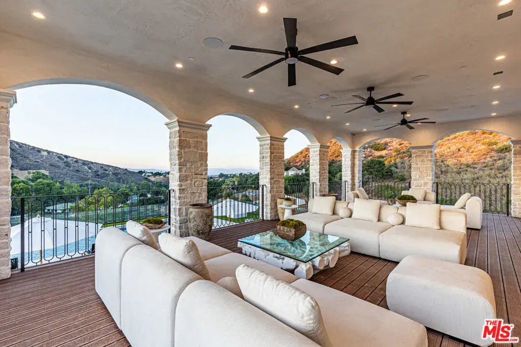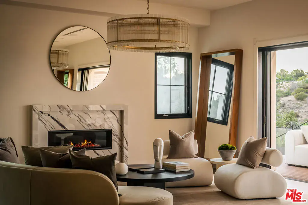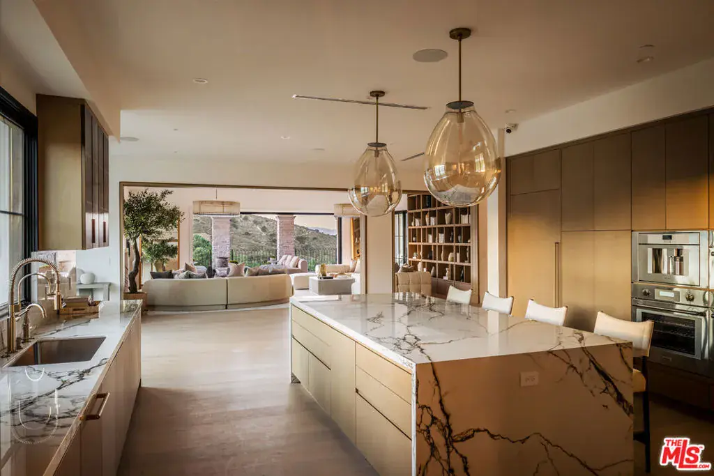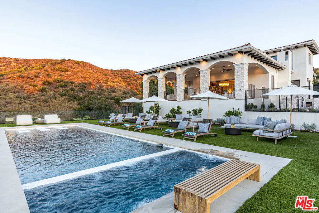 Perched on a private 4.5-acre knoll in the heart of Calabasas, this newly constructed 12,140 sq ft contemporary Mediterranean masterpiece offers the ultimate blend of elegance, privacy, and modern design. With breathtaking canyon and mountain views, this expansive estate features 6 spacious bedrooms, 7 bathrooms, and a thoughtfully curated floor plan ideal for both grand entertaining and everyday living. Inside, soaring ceilings and walls of glass flood the home with natural light, highlighting custom finishes and refined craftsmanship throughout. A state-of-the-art movie theater and sleek bar area create the perfect environment for luxurious entertaining, while multiple living spaces seamlessly open to the outdoors. The property is framed by mature oak trees and lush natural landscaping, with numerous outdoor spaces including an expansive deck tucked beneath a canopy of oaks ideal for al fresco dining or serene sunset lounging. A rare offering that brings together contemporary sophistication and Mediterranean warmth in one of Calabasas’ most exclusive settings.