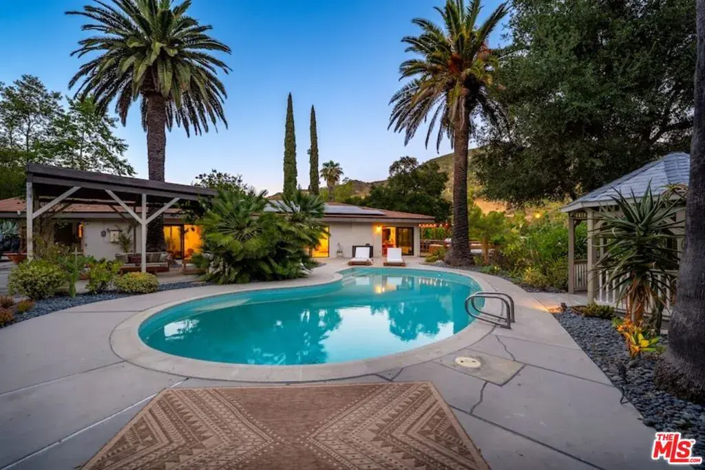 A very special offering in Calabasas, this gated Zen contemporary mini-estate sits atop its own private promontory with serene mountain views overlooking the Mulholland Scenic Corridor. Set on over an acre of land, the property includes a large fenced area with excellent potential for horses, gardens, or additional outdoor amenities, offering a rare combination of privacy, flexibility, and connection to nature just minutes from city conveniences.The beautifully updated main residence features an open-concept floor plan filled with natural light, soaring ceilings, recessed lighting, white oak wood floors, and custom wood interior windows that seamlessly blend indoor and outdoor living. The great room flows into a generous dining area, creating an ideal setting for entertaining or everyday living. The island kitchen is a standout, featuring a rare La Cornue five-burner stove with pot filler, copper farmhouse sink, striking countertops with glass tile backsplash, and a center island for casual seating.Outdoor living is at the heart of the home, with sweeping views of the pool, gazebo, mountains, and expansive grounds. The grounds have been carefully and thoughtfully designed by Natural Earth Landscaping, featuring hundreds of mature plantings that create a sense of serene privacy and a tranquil, nature-forward aesthetic. The fully usable acre offers lush yet drought-conscious landscaping, meandering pathways, meditation gardens, fruit trees, and several beautifully curated outdoor spaces that invite relaxation, gatherings, and quiet reflection. Enjoy a sparkling saltwater pool, cold plunge, mineral-rich swim spa, BBQ area with outdoor refrigerator, and peaceful seating areas throughout the property, along with a natural amphitheater ideal for wellness activities and entertaining.The spacious primary suite offers a tranquil retreat with a steam shower and dual walk-in closets. Additional space includes an attached junior primary suite with a separate entrance and a detached bonus structure with kitchenette and deck space, currently used as a recording studio and creative workspace, offering versatility as a car barn, studio, or private retreat. A dedicated yoga studio and professional recording space further complement the property’s serene and creative atmosphere.Additional features include an owned solar system, Pella windows, ample on-site parking via a long meandering driveway, storage sheds, and open usable land ideal for equestrian use. Located just minutes from The Commons at Calabasas, Woodland Hills, top public and private schools, scenic hiking and horseback riding trails, and the beaches of Malibu, this exceptional property offers a rare opportunity to live, create, and thrive in a setting that feels like a private retreat while remaining close to everything. An absolute must see.