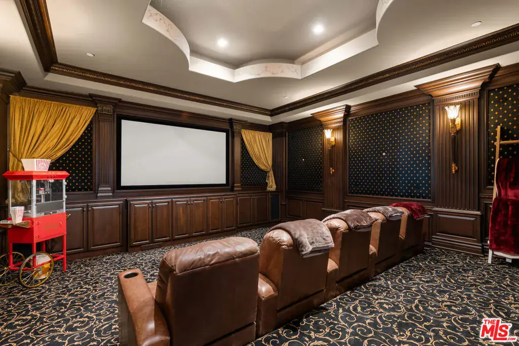 Behind the coveted secondary gates of The Estates at The Oaks, this exceptional custom residence offers unmatched privacy, sweeping mountain and canyon views, and a rare opportunity to own one of Calabasas’ premier properties. Set on an expansive, beautifully landscaped lot, the home blends timeless design with resort-style amenities throughout. A grand double-height foyer introduces a warm, open layout ideal for both everyday living and elevated entertaining. The main level features formal living and dining rooms, a lounge wing with game room, full bar, and a private theater, along with a chef’s kitchen anchored by Viking appliances, a large island, and a cozy fireplace.Upstairs, the serene primary retreat enjoys a fireplace, large walk-in closet, spa-inspired bath, and a private balcony framing spectacular view lines. Outside, the estate transforms into a true private compound complete with a beach-entry pool and spa, generous grassy areas, a putting green, sports court, two outdoor fireplaces, fire pit, and a full barbecue pavilion with smoker and pizza oven. Additional amenities include a 1,000-bottle temperature-controlled wine room, gym with massage space, elevator, and a climate-controlled, fireproof 8-car garage perfect for collectors.